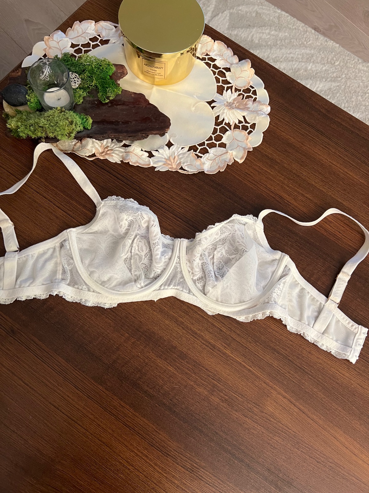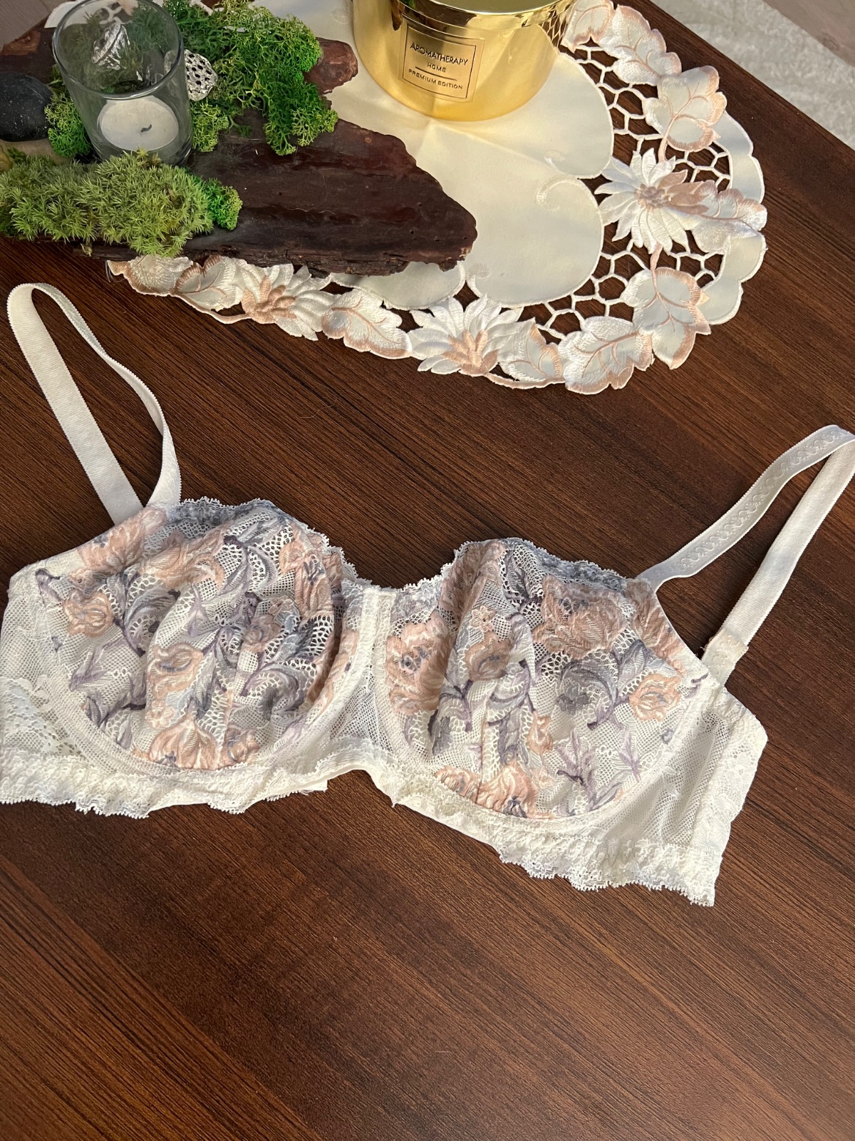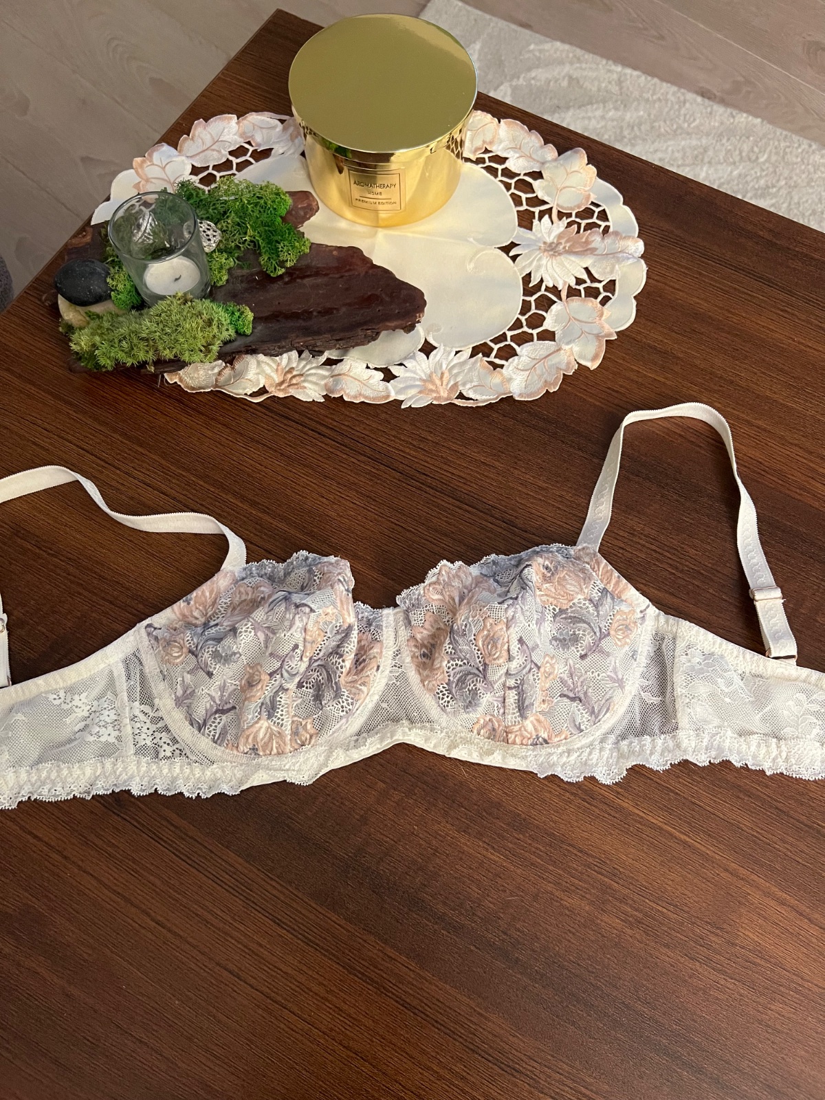 Pekné prevedenie farieb a krajkového vzoru.