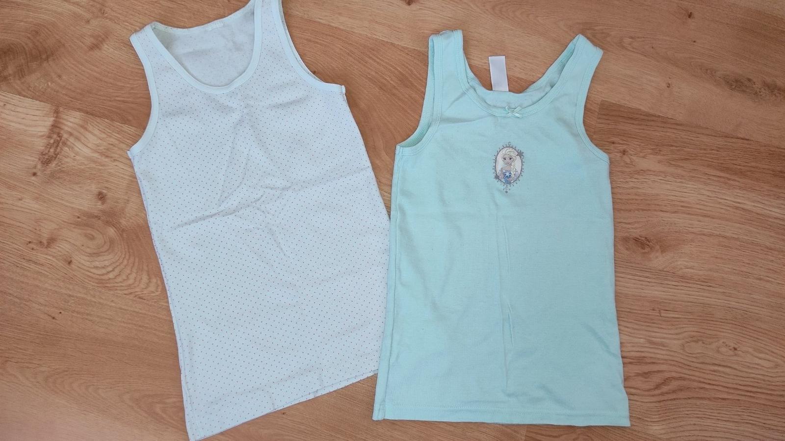 Ponúkam na predaj dve pekne bavlnené tielka pre dievčatko. Nosené, ale neznicene, stále pekne, mali sme ich veľa. Cena 4 eura.