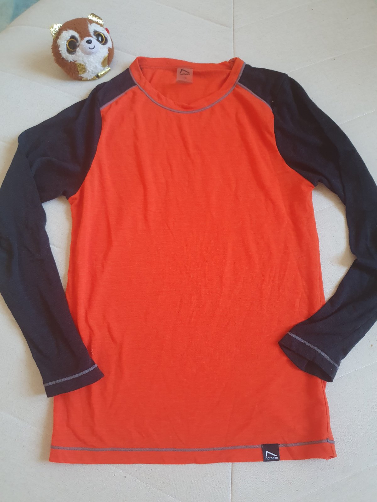 40% merino vlna, 60% polyester. Tenký, jemný, ale pevný materiál. Je veľmi skladné - ako poistka do batoha.