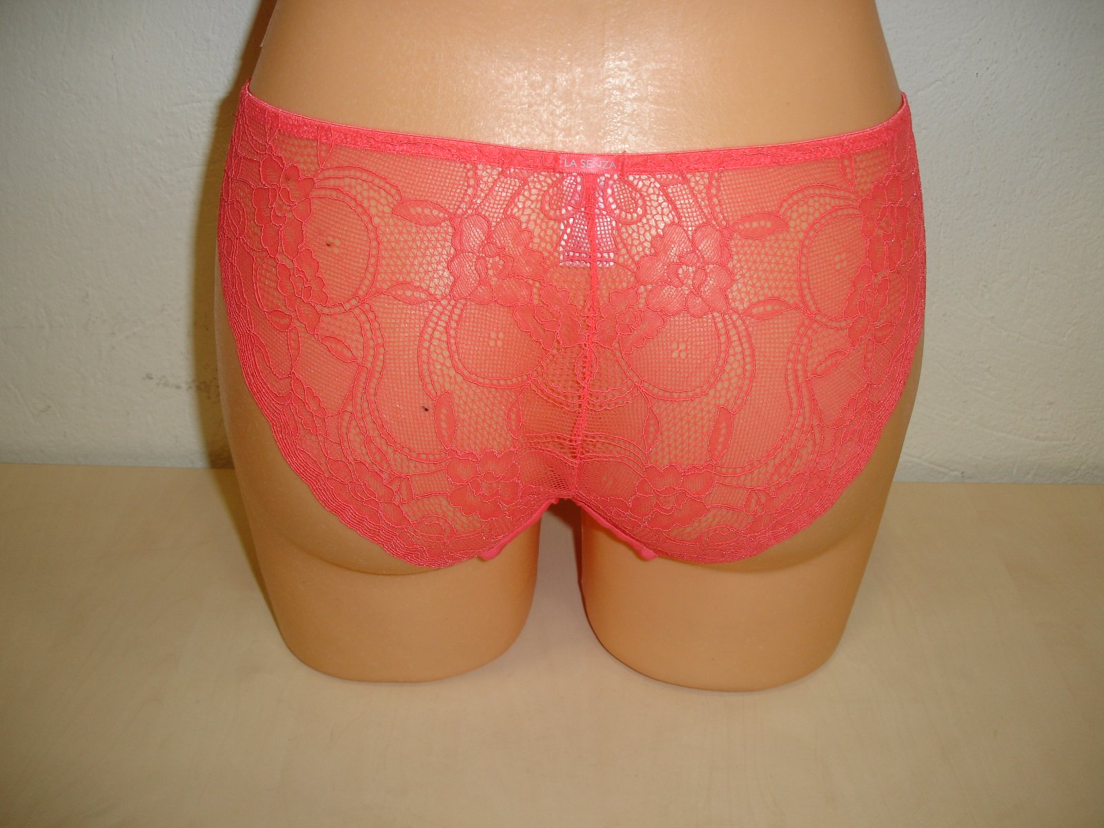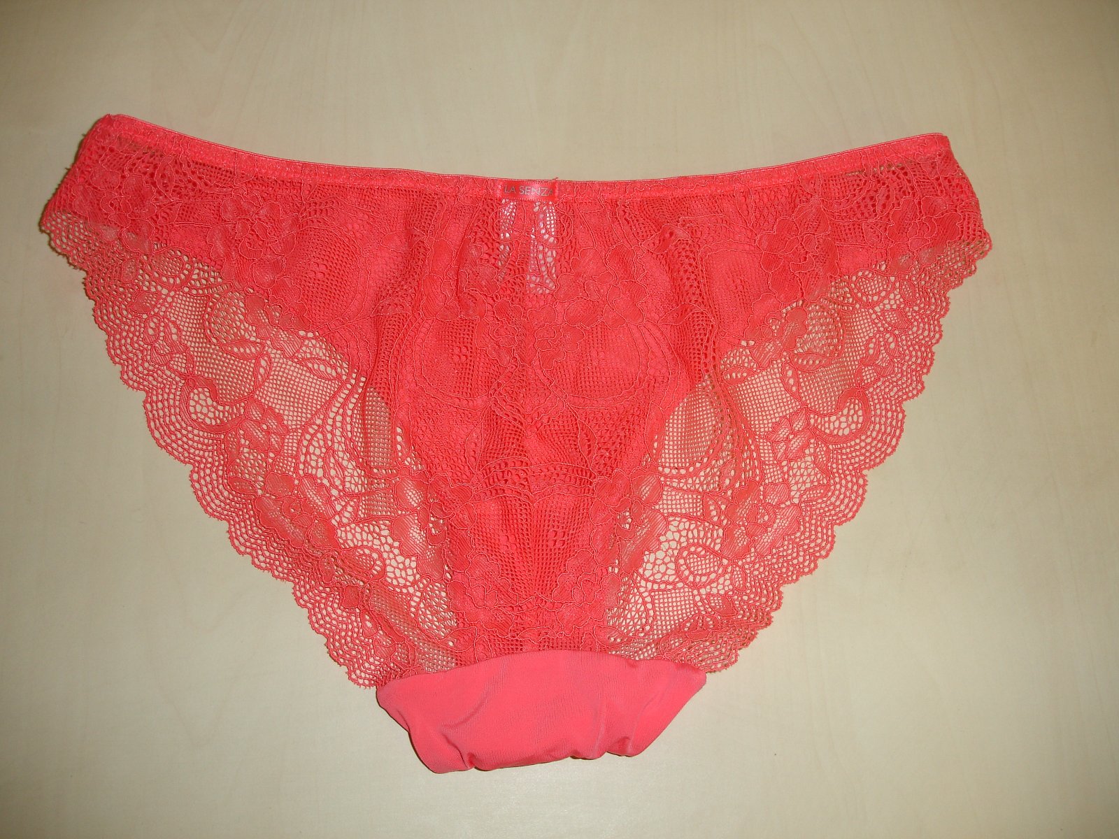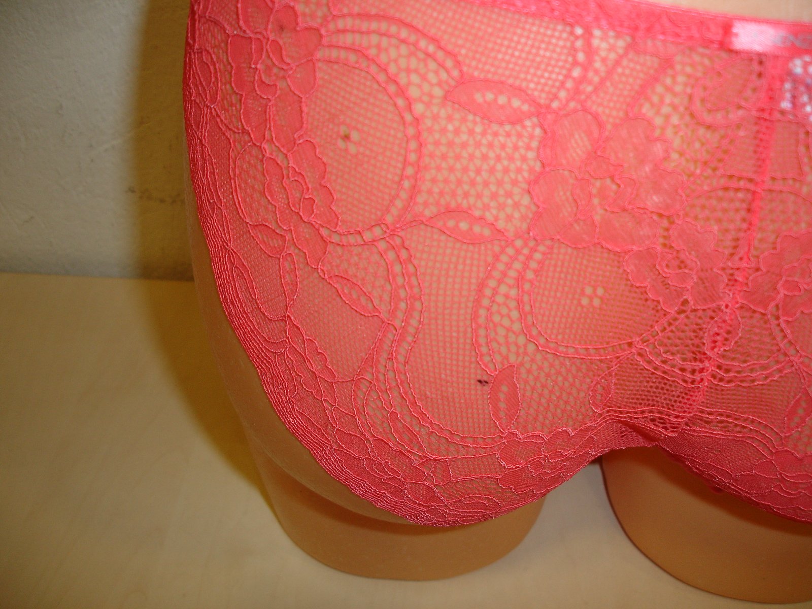 Nosené bez poškodenia. Materiál je 85 % polyamid a 15 % elastan. Rozmery sú šírka v páse v nenatiahnutom stave 32 cm x 2 a v natiahnutom stave 41 cm x 2, sed je 21 cm.