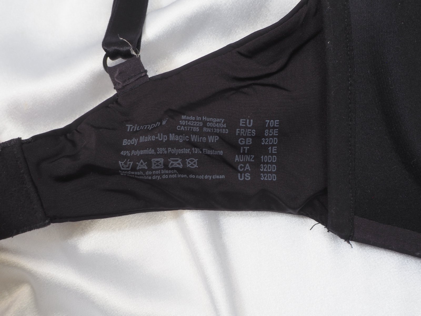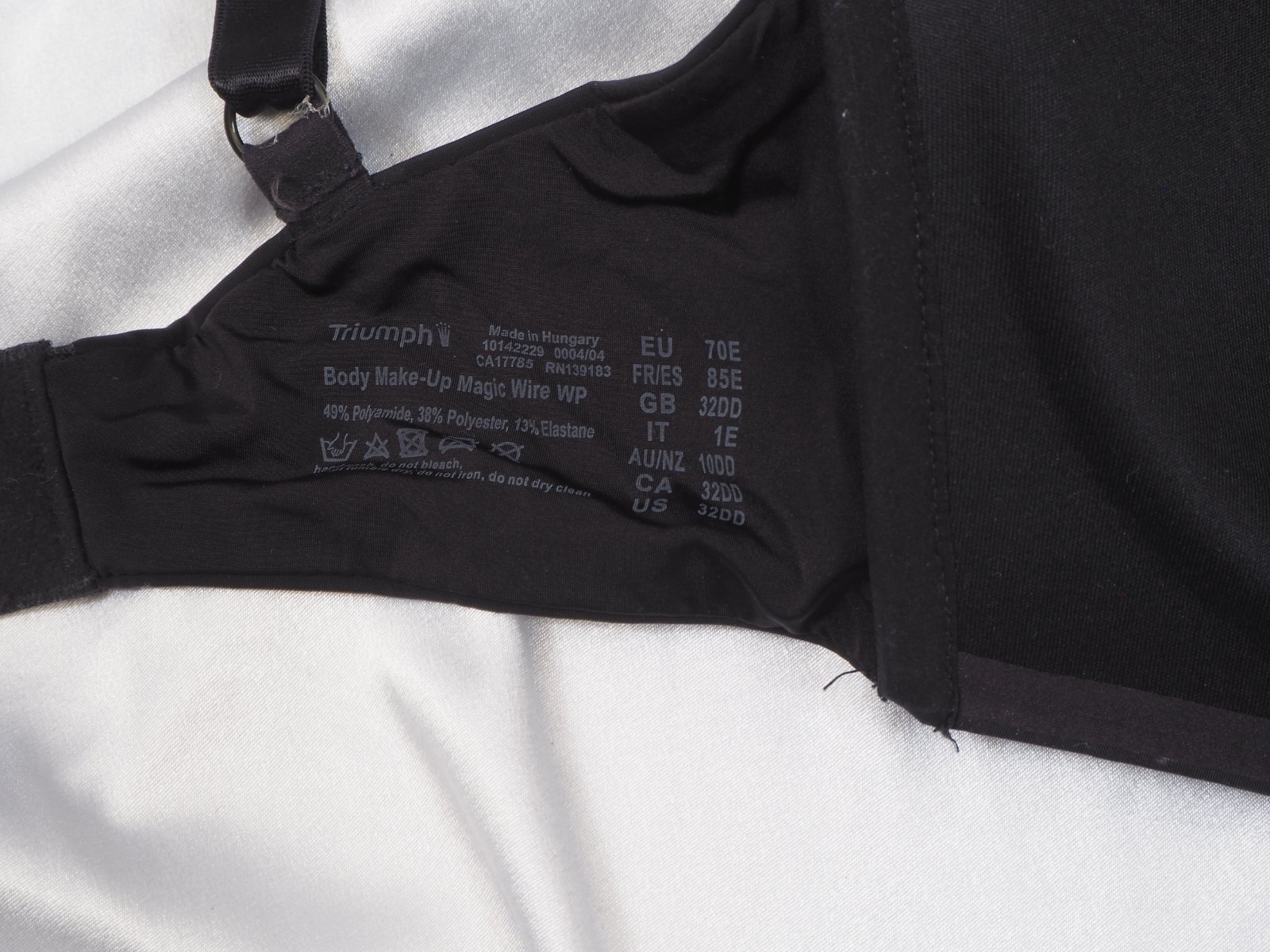 Kvalitná čierna vystužená podprsenka bez kostíc, Triumph Body Make-up Magic Wire WP, materiál 49% nylon, 38% polyester, 13% elastan, super stav.