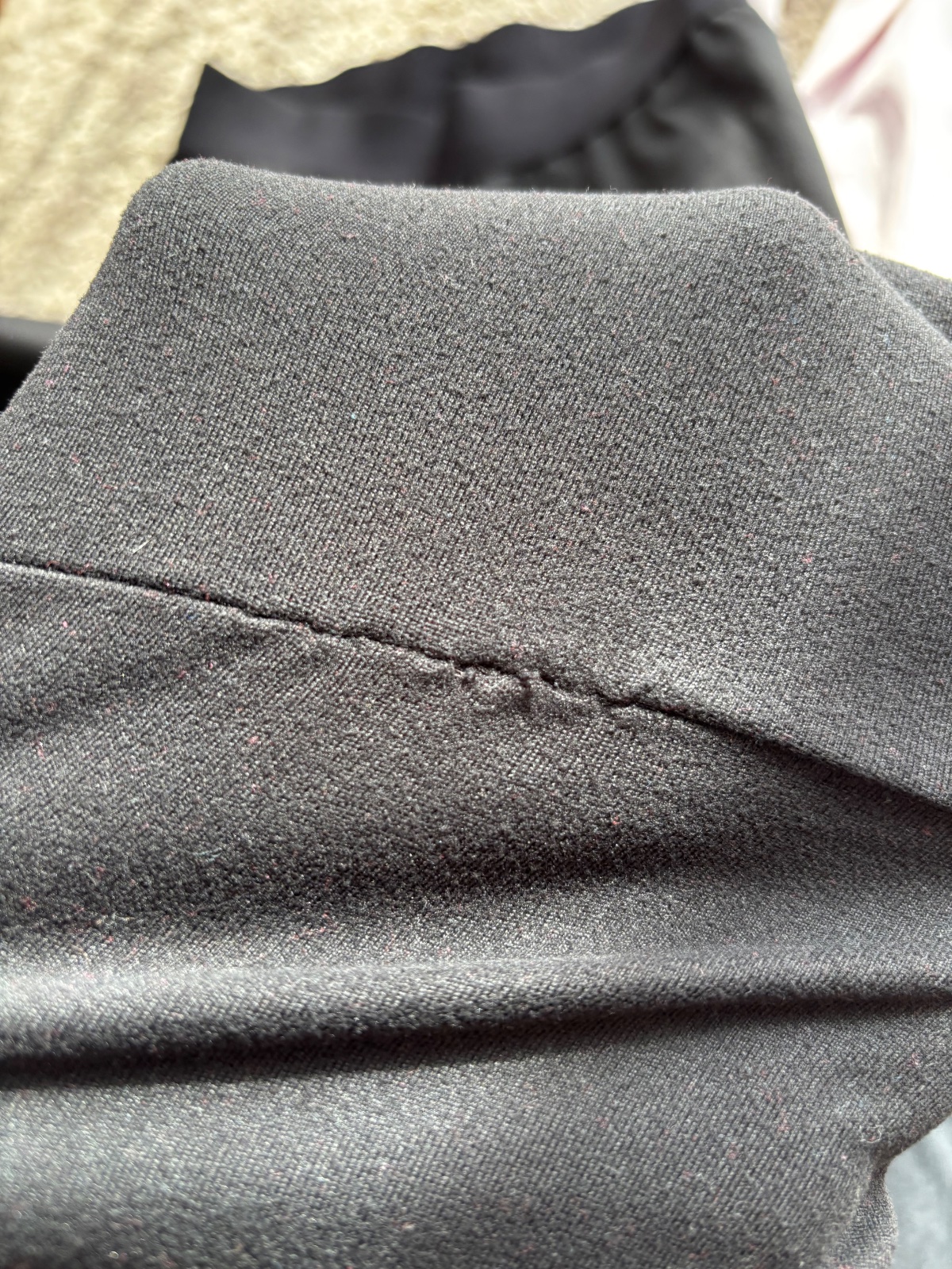 Je teplajšie, vrch má trochu sivý nádych a mini žmolky, nohavice kúsok zošité a mini žmolky