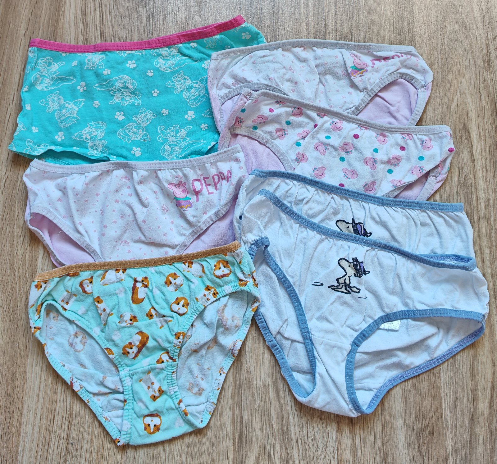 Morské prasiatka sú Dedoles, ostatné Lidl - paw patrol, Peppa pig, Snoopy. Niektoré nosené viac iné len pár krát. Bez dier, fľakov