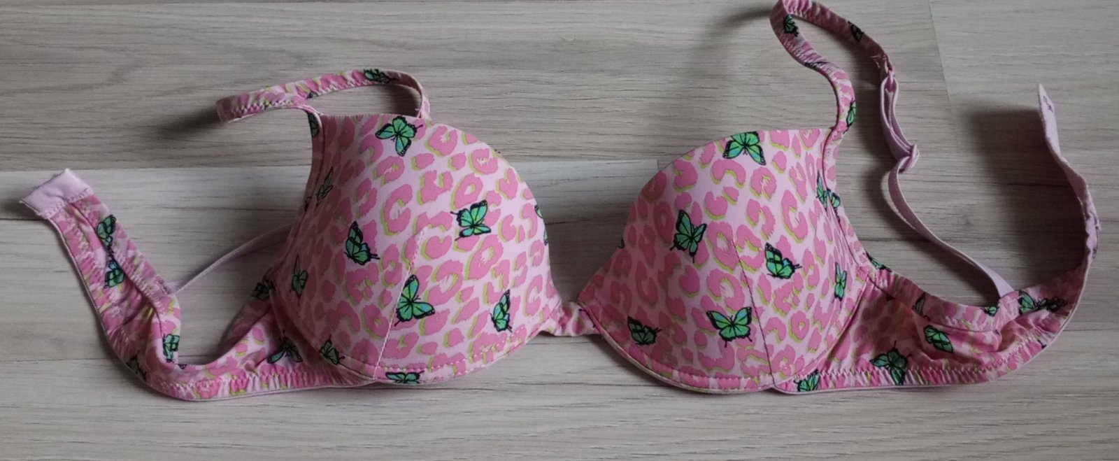 Cierna podprsenka s vystuzou.Vzadu sa trochu deru von gumicky, vid foto 3 ale da sa este nosit