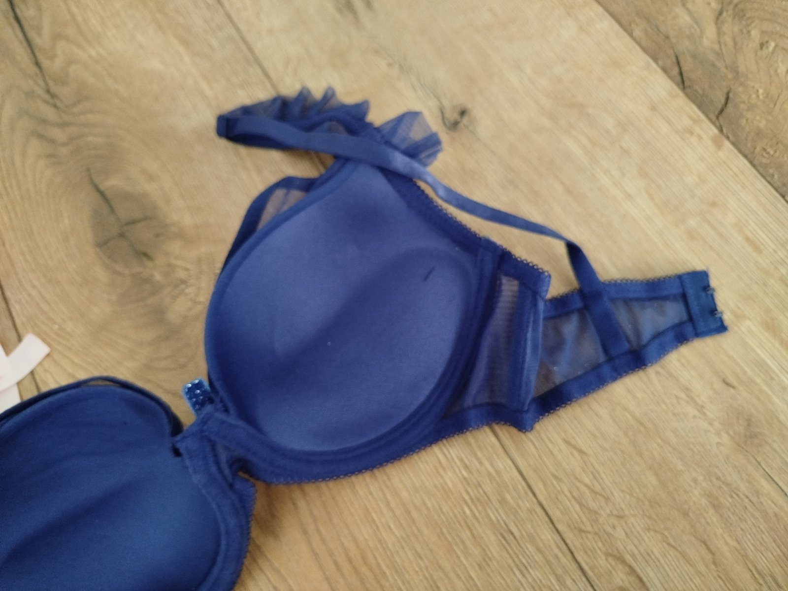* Dizajn: Jemný, trblietavý materiál s volánikmi na ramienkach, ktorý dodáva podprsenke elegantný a ženský vzhľad.