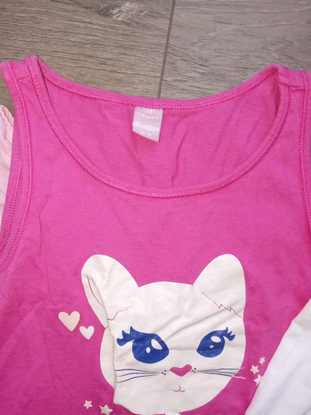 Ponúkam na predaj krásne bavlnené tielka pre dievčatko. Nosené na striedačku s mnohými inými, bez akýchkoľvek poškodení. Obrázky neporušené, jemne trblietavé. Cena 6 eur.