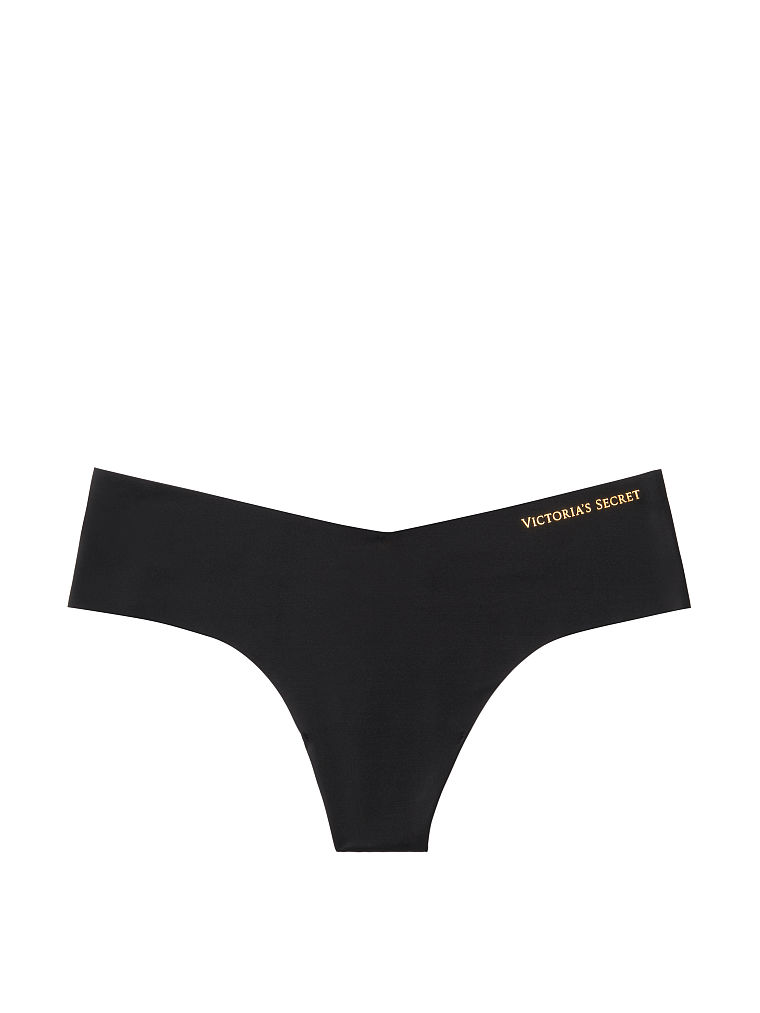 Hladké tango nohavičky, kolekcia Sexi Illusions, model No-Show Thong Panty, farba čiarna Black DL3 so zlatým nápisom. Kód 401042.