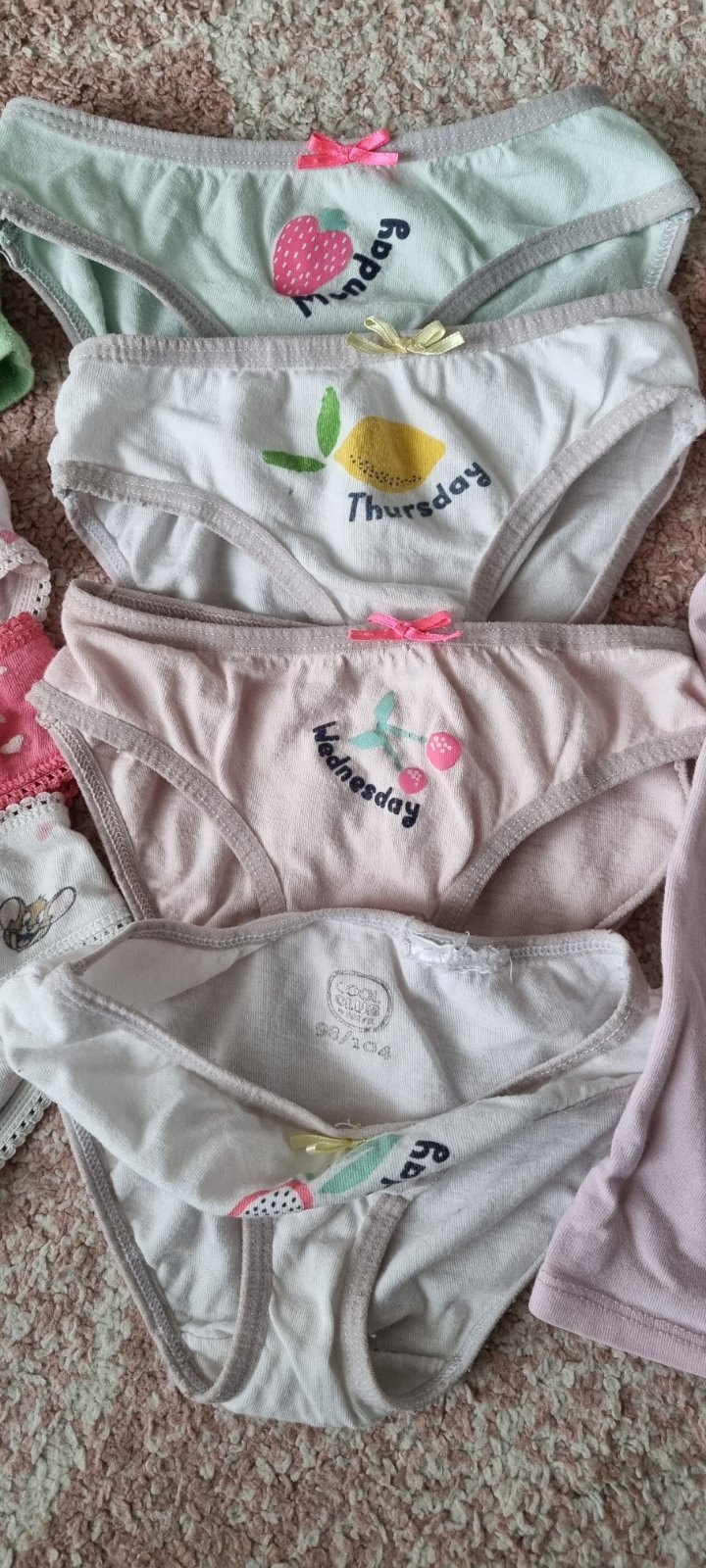 3x nohavičky na plienku.Nosene len svetlejšie ružové,zvyšné len oprate. Svetlo ružové majú okolo nožičky fliacik(viď. druhá fotka,nedá sa ani odfotiť,je to pozostatok fľaky od trávy). Cena spolu 6€.