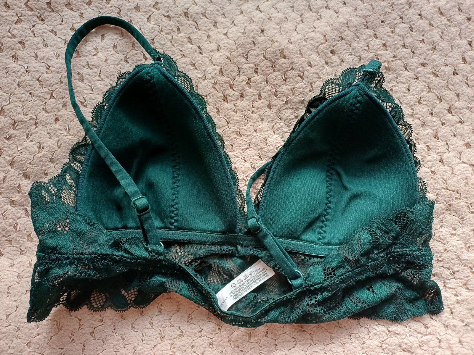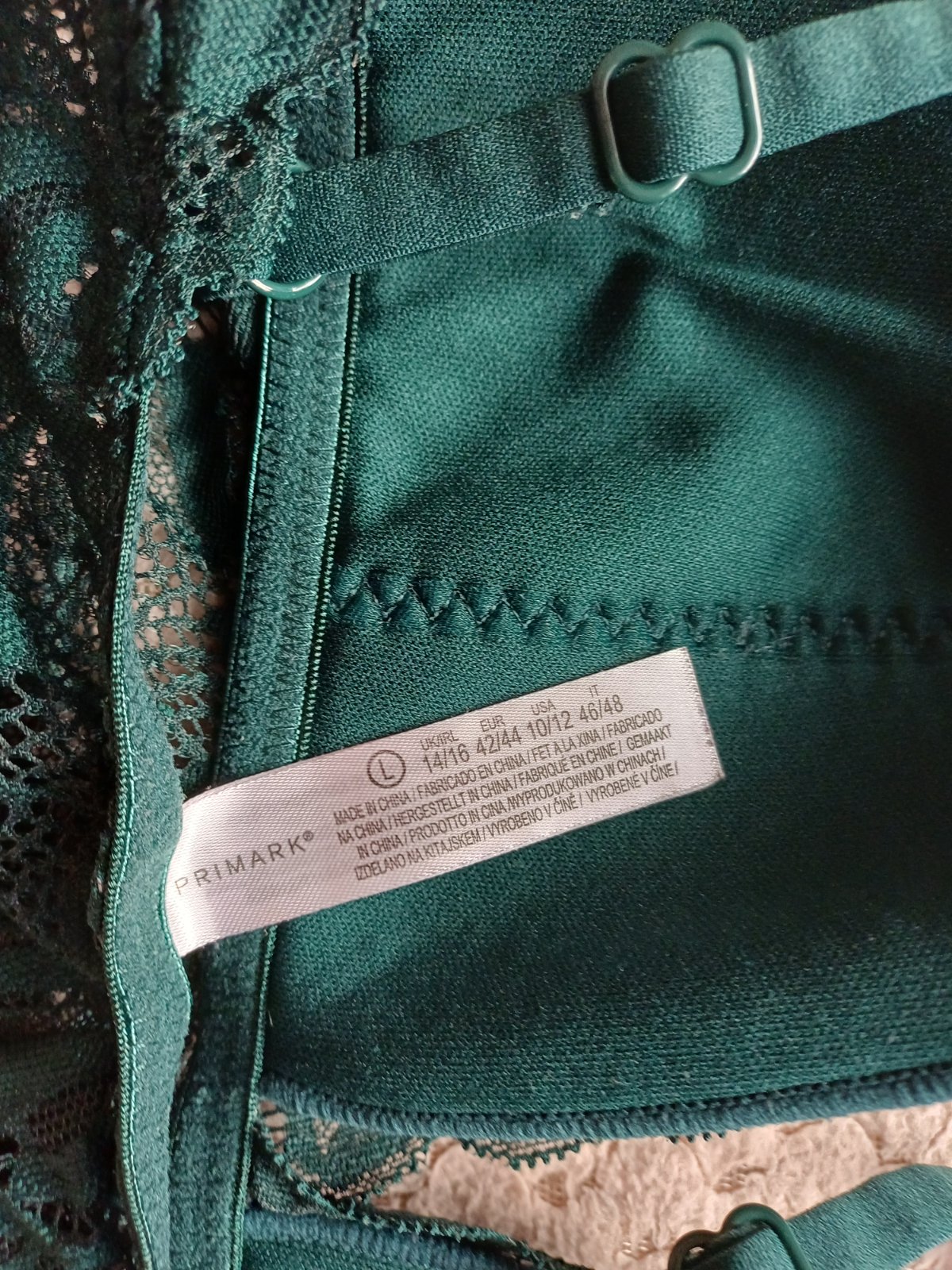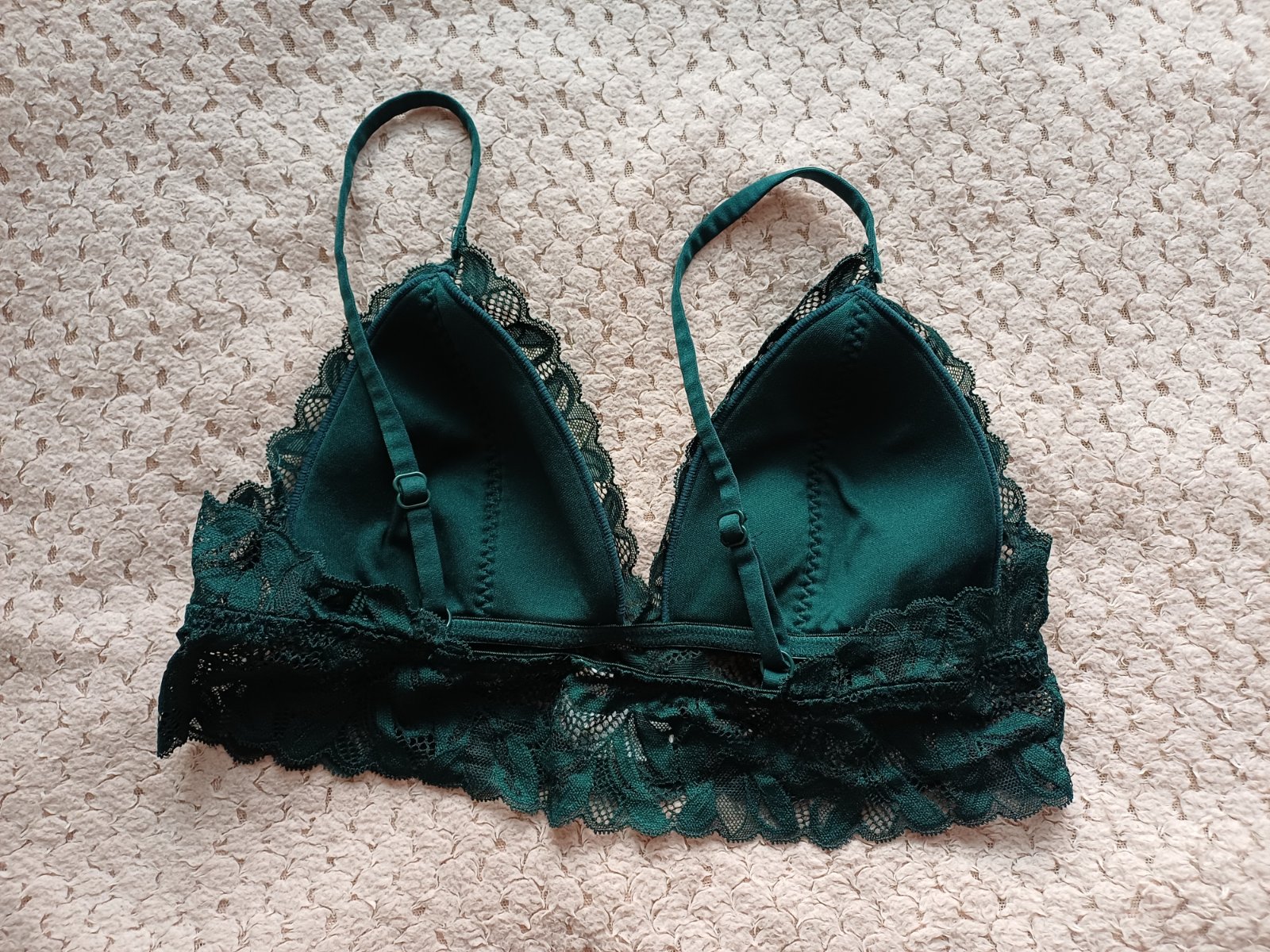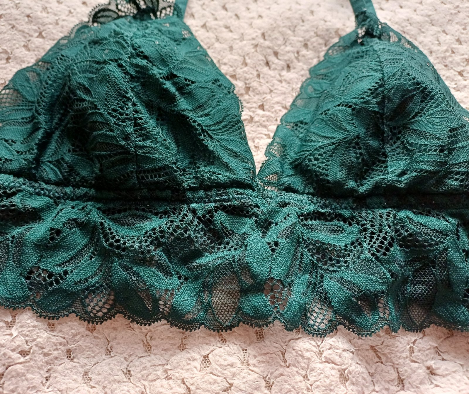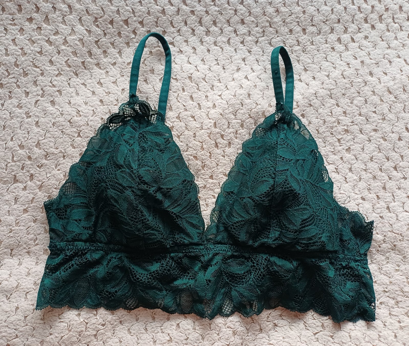 Krásna tmavozelená čipkovaná braletka bez kostíc s výstužou vo veľkosti L.