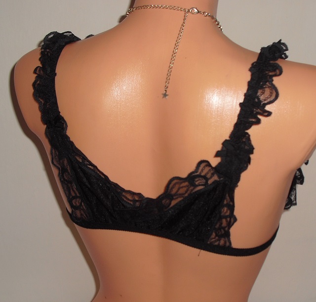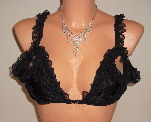 predam nadhernu paris sexy ciernu podprsenku s krajkami, sexi zdobena, velkost ide na m/l kosicky su bez kostic polohovatelne podla poprsia na 80 b-c. su s otvormi sexi na poprsi. v strede medzi poprsim sa zapina na srdiecko. obvod pod poprsim 77 cm az 90 cm.