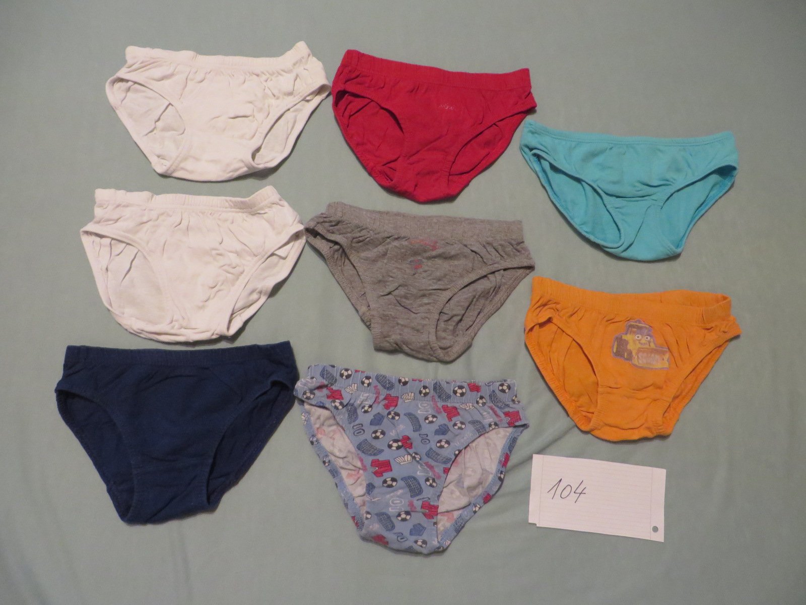 Predám tieto nosené chlapčenské slipy, veľ. 104. Spolu ich je 8 ks, cena je za všetky spolu. Sú nosené, ale niekomu sa ešte môžu zísť.