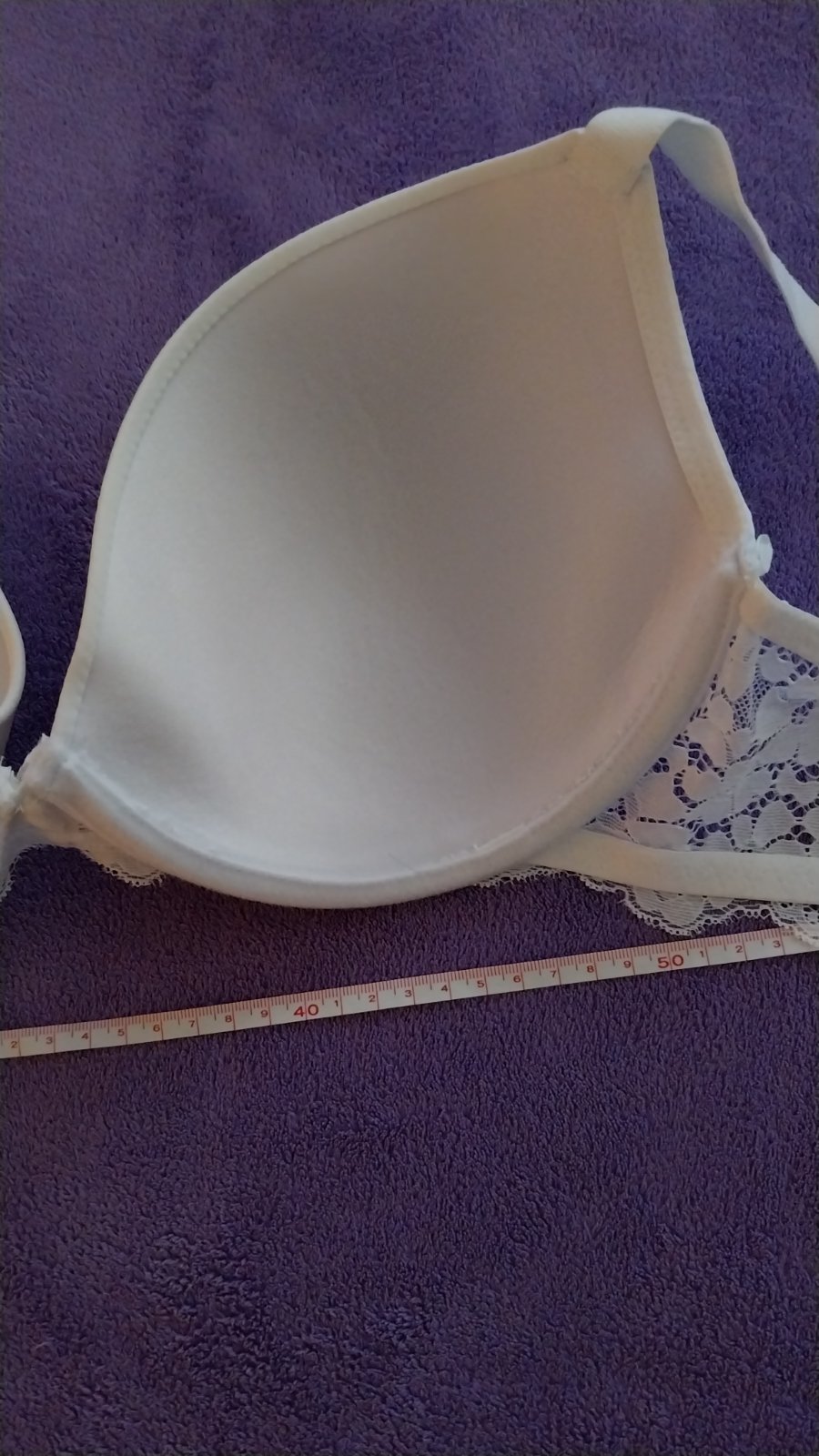 Biela vystužená podprsenka s čipkovaným obvodom , krásna biela farba. Štítok je odstrihnutý, nosená ako 90B.