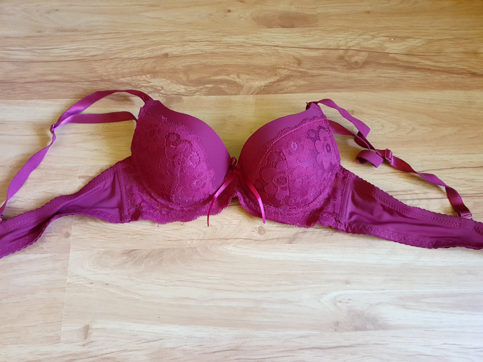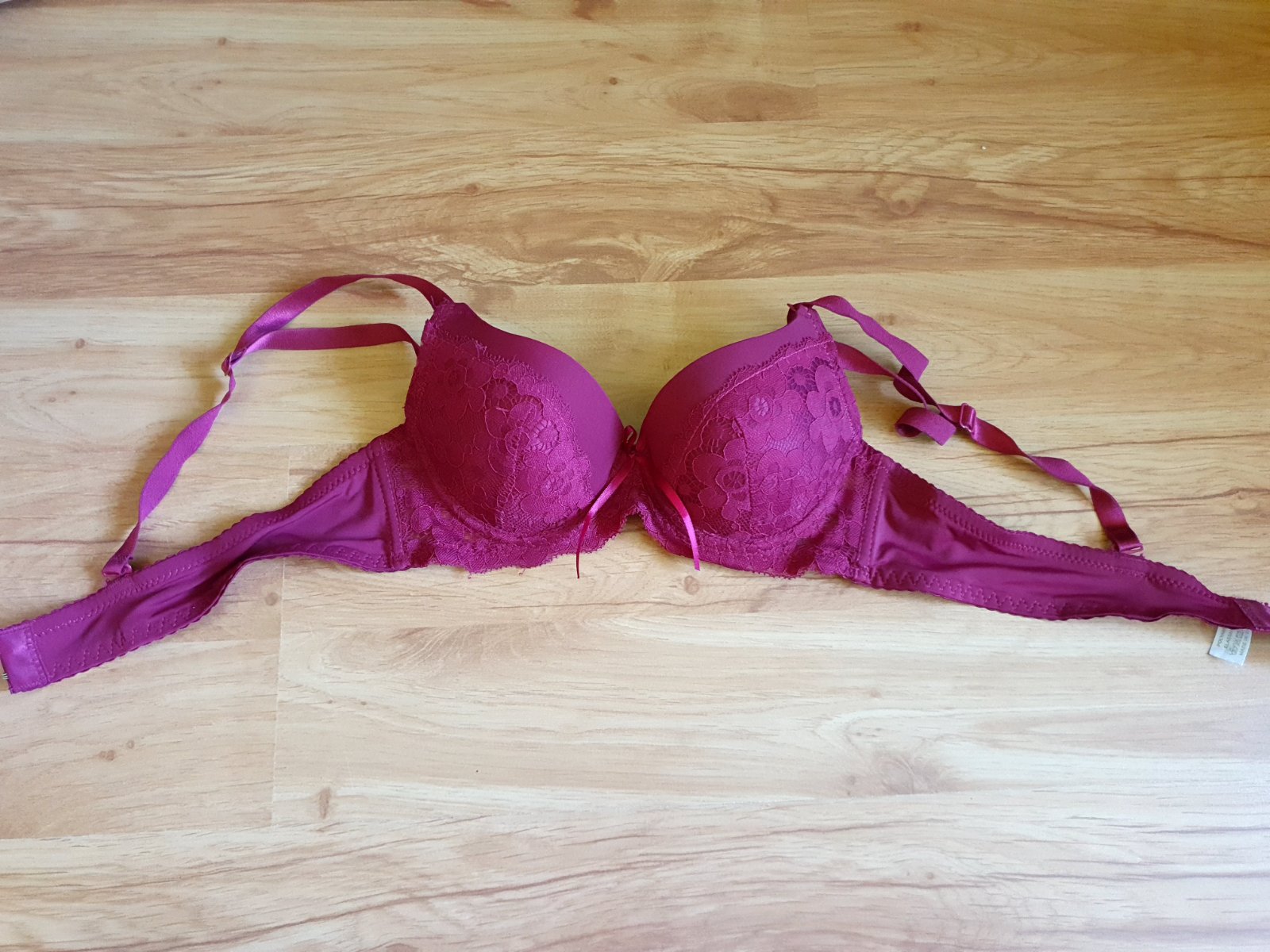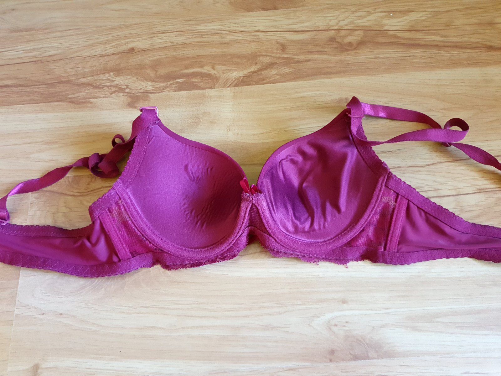 Bez poškodení. Zapína sa na prednej strane medzi prsiami. Mierne push-up.