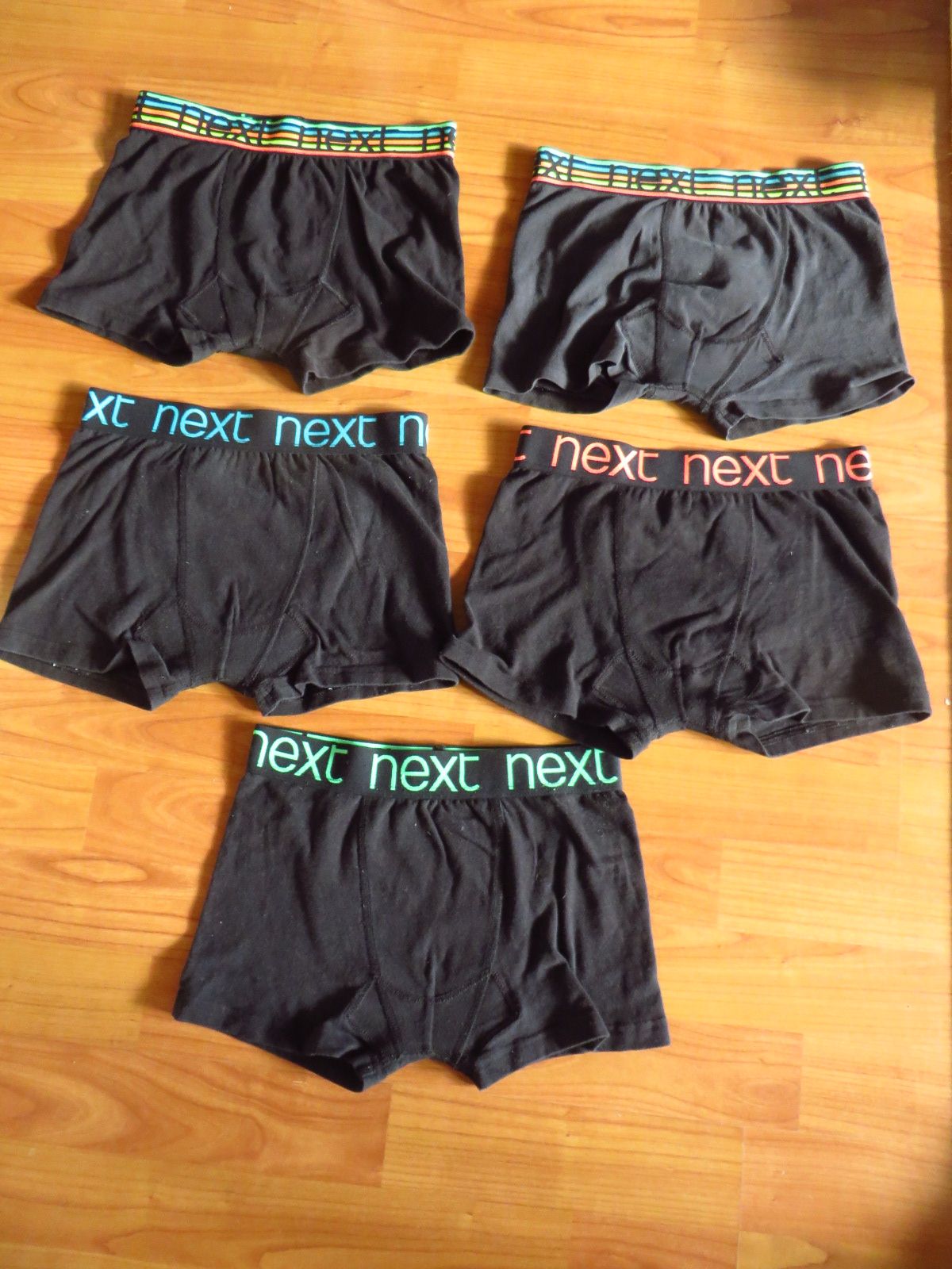 redám chlapčenské nosené boxerky, 5 ks, značka NEXT. Veľkosť je 134, pás meria 26 cm (x2). Sú v dobrom stave.