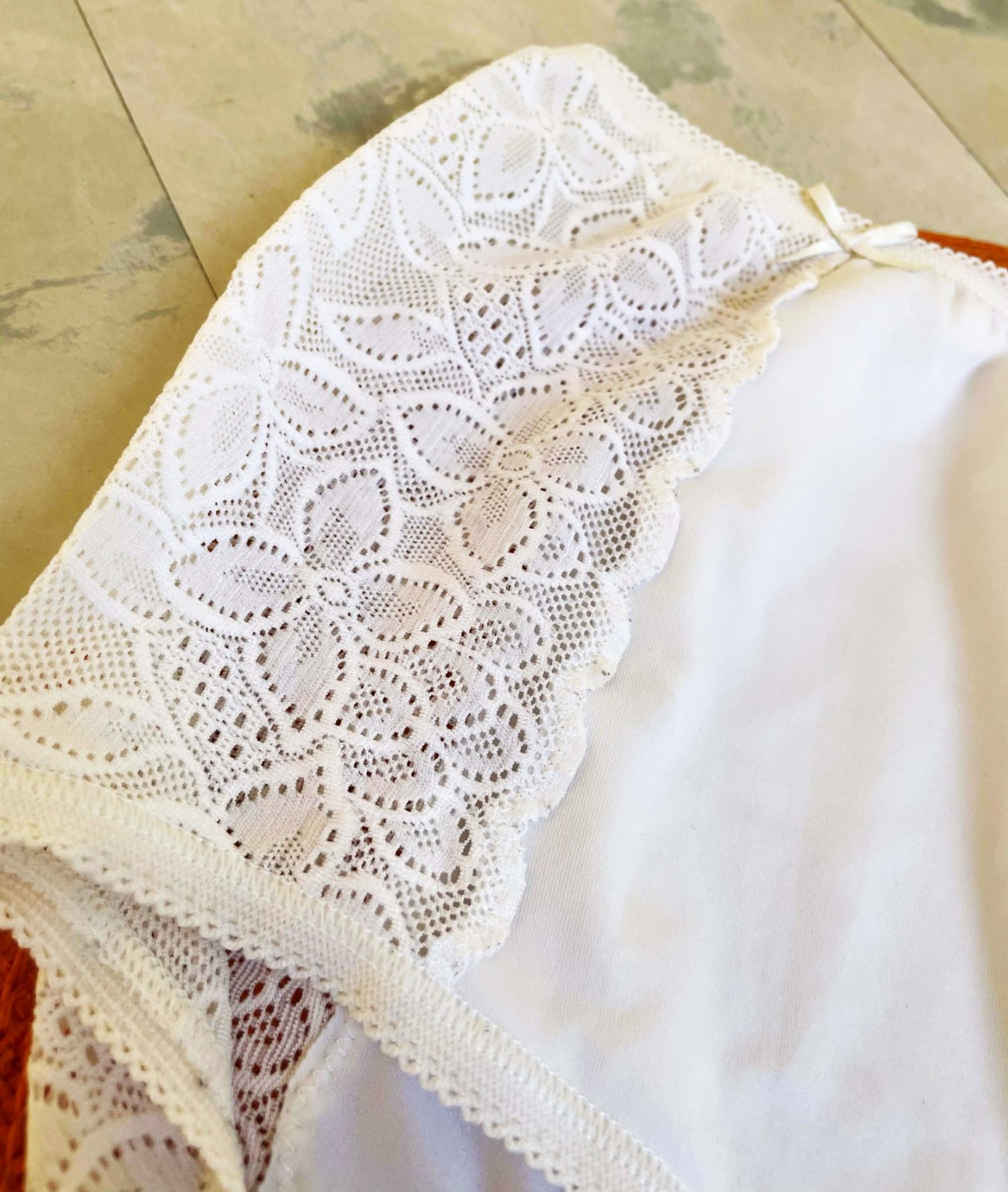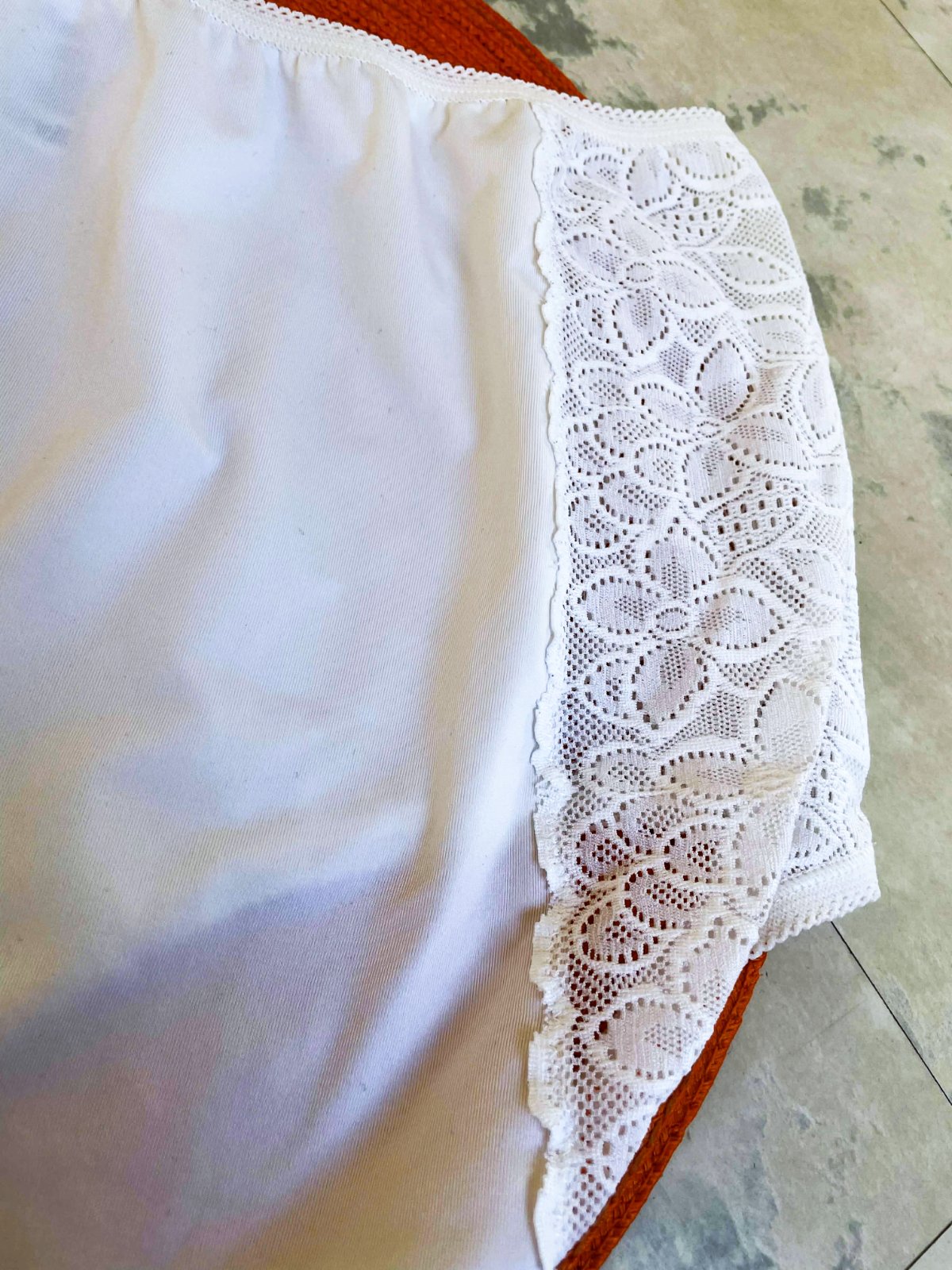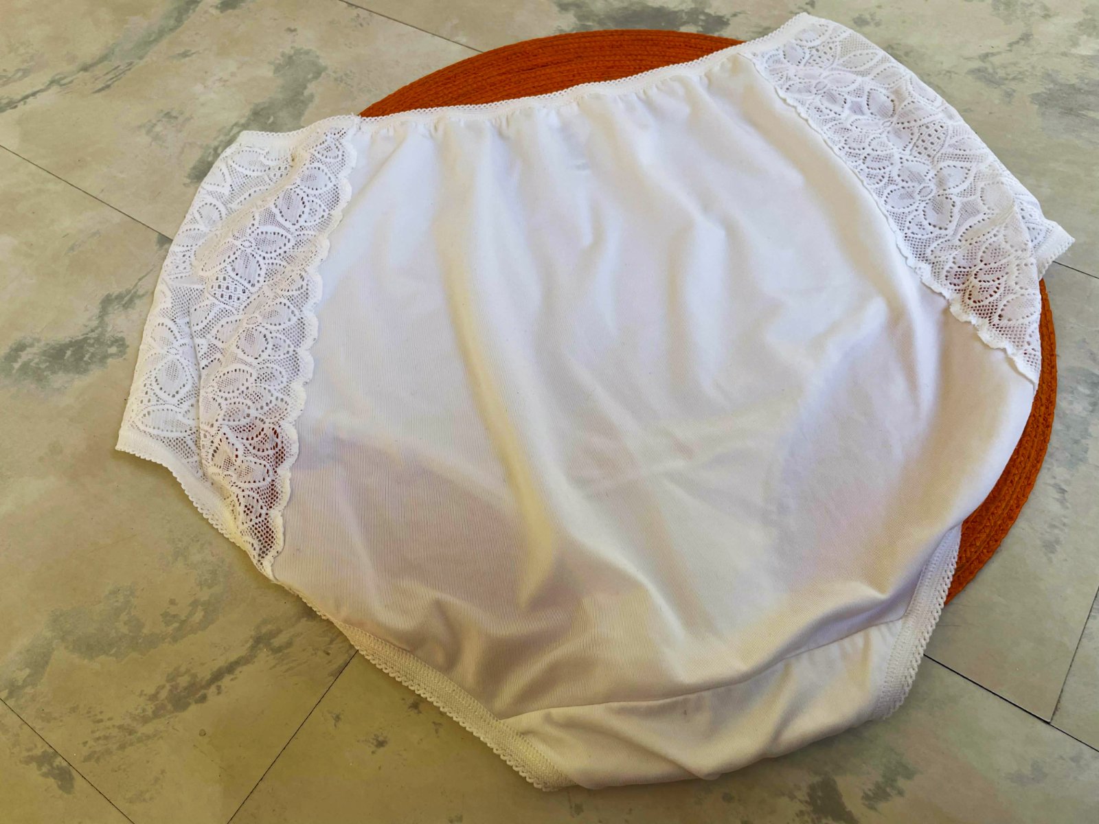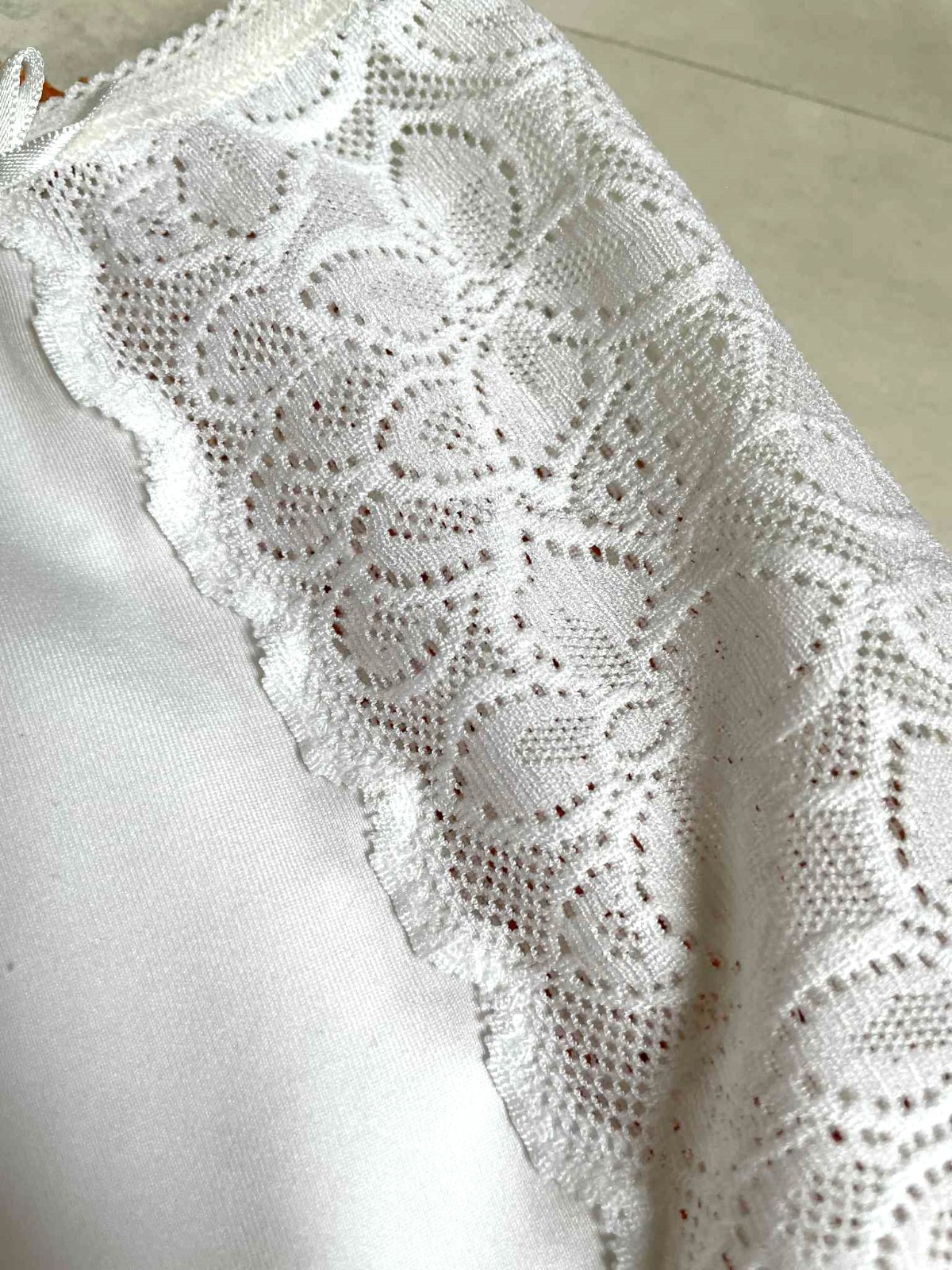 kvalitné luxusné nohavičky s vysokým pásom kombinované po bokoch s elastickou krajkou,sú iba preprané po skladovaní - top stav a kvalita,krásne sedia na postave,značka a veľkosť vyfotené, naša veľkosť 46