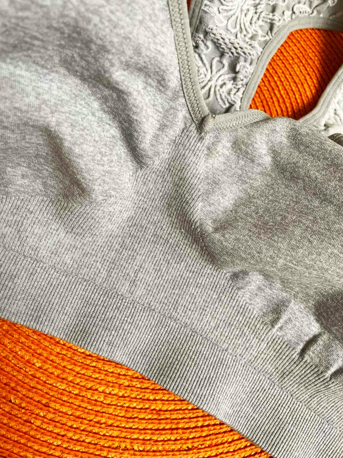 kvalitná pevná hrubšia bezšvová elastická podprsenka,hrubá elastická krajka kombinovaná s pevným elastickým úpletom,veľmi poddajná od č.M-L,prevlieka sa cez hlavu,košík C/B