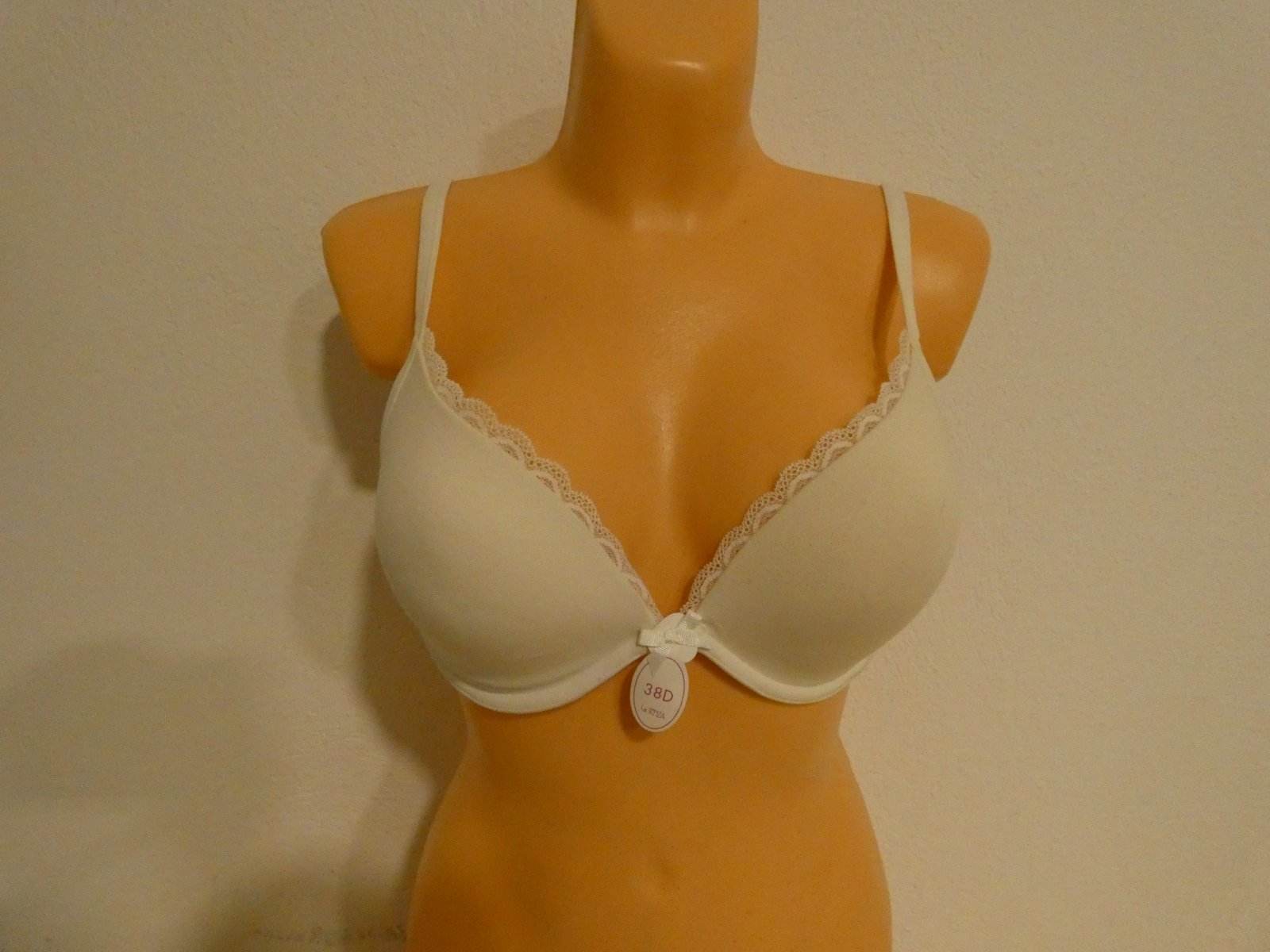 Nenosená bez poškodenia. Veľmi pekne sedí. Je mierne vystužená. Ramienka sú posuvné a dajú sa nosiť aj do kríža. Zloženie je 67 % bavlna ,29 % polyester a 4 % elastán.