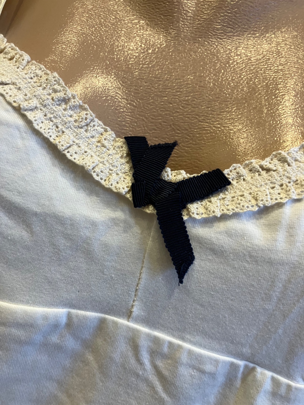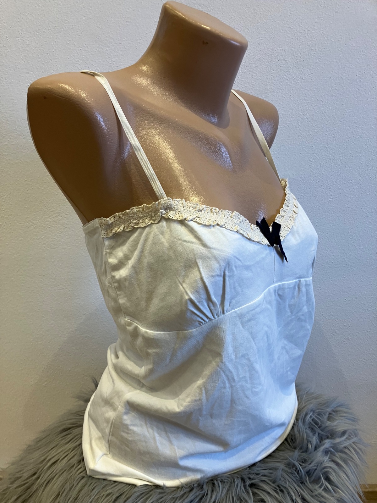 Dámske spodné tielko s čipkou a mašľou, na tenké ramienka, ramienka sú nastaviteľné, elastické, materiál 90%bavlna 10%elastan.