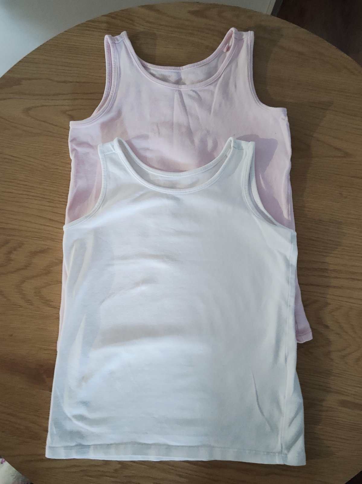 Ahojte. Predám tieto dievčenské tielka. Pekný nosený stav. Dĺžka na foto. Cena spolu.