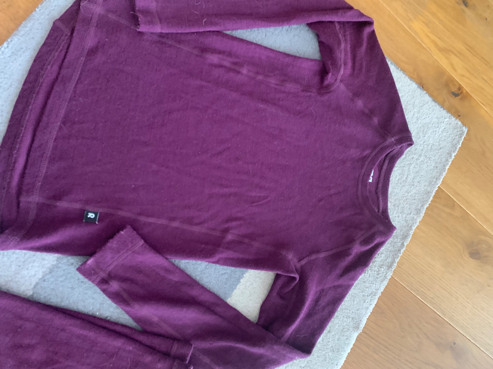 výborný stav, vysoký podiel merina, veľmi príjemné, funkčné, nehryzie, ani neškriabe, sedí, baklažánová farba, dá sa obliecť už ako 128, je zmačené 130 a ke skor vačšie, takže ideál ako 134 až 140, minižmolky, čo je pre akékoľvek merino typické