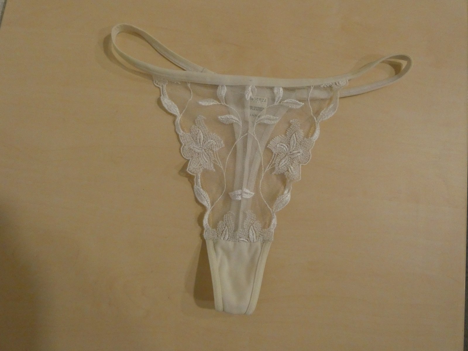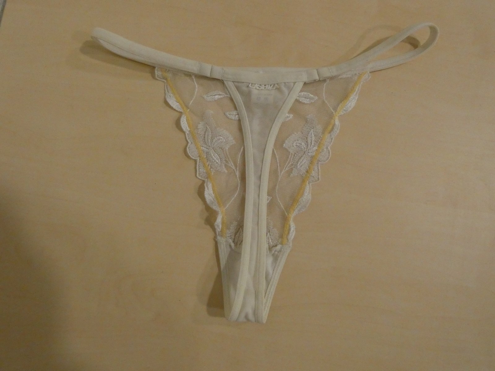 Nosené bez poškodenia. Materiál je 83% polyamid a 17% elastan. Rozmery sú v páse v nenatiahnutom stave 35 cm x 2 a v natiahnutom stave 43 cm x 2 , sed je 23 cm.
