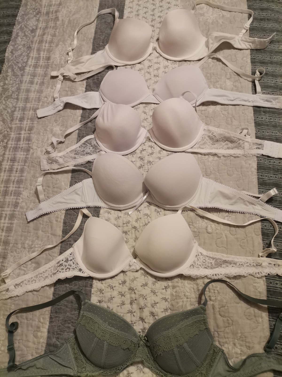Farba uz nie je ziariva biela, nosena, ramienka už trošku zozltnute treba vymeniť, podprsenka je skôr na donosenie