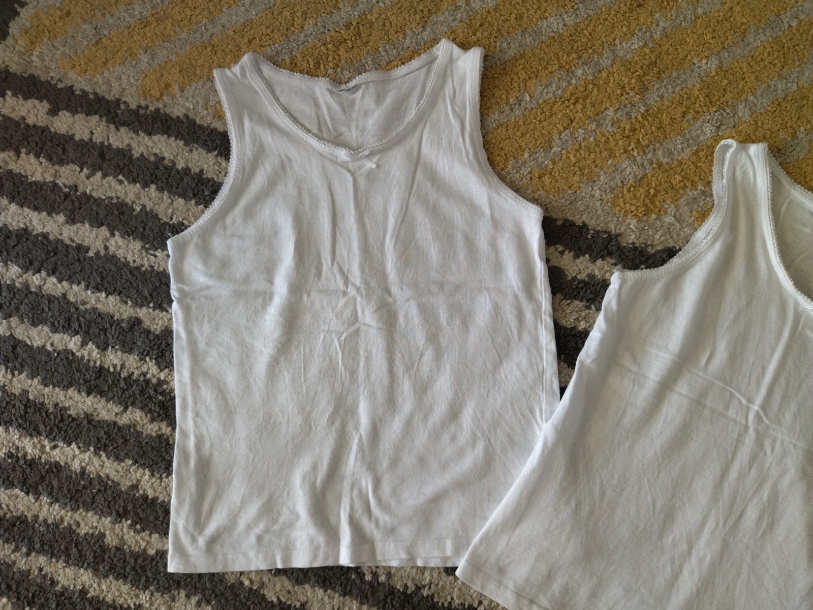 Veľmi dobrý stav, bez poškodení, bez zmolkov, bez fľakov, dĺžka 44cm, šírka pod pazuchami 32cm, štítok odstrihnuty, už neviem značku, cena spolu