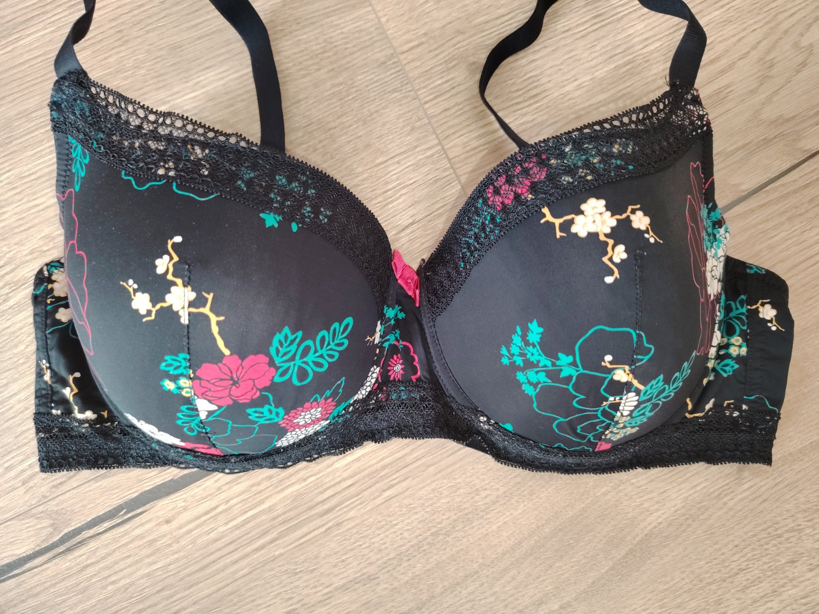 Podprsenka oblečená asi 2x. Mne nesadla veľkosť. Je ako nová. Veľkosť 90B, obvod v klude 80cm, maximálne 92cm.