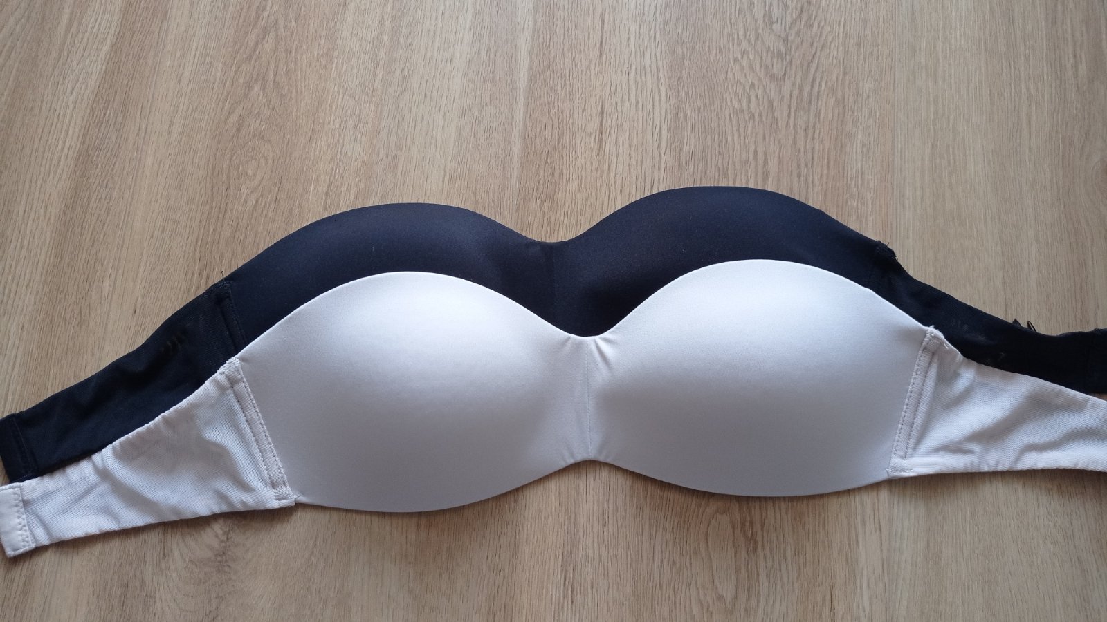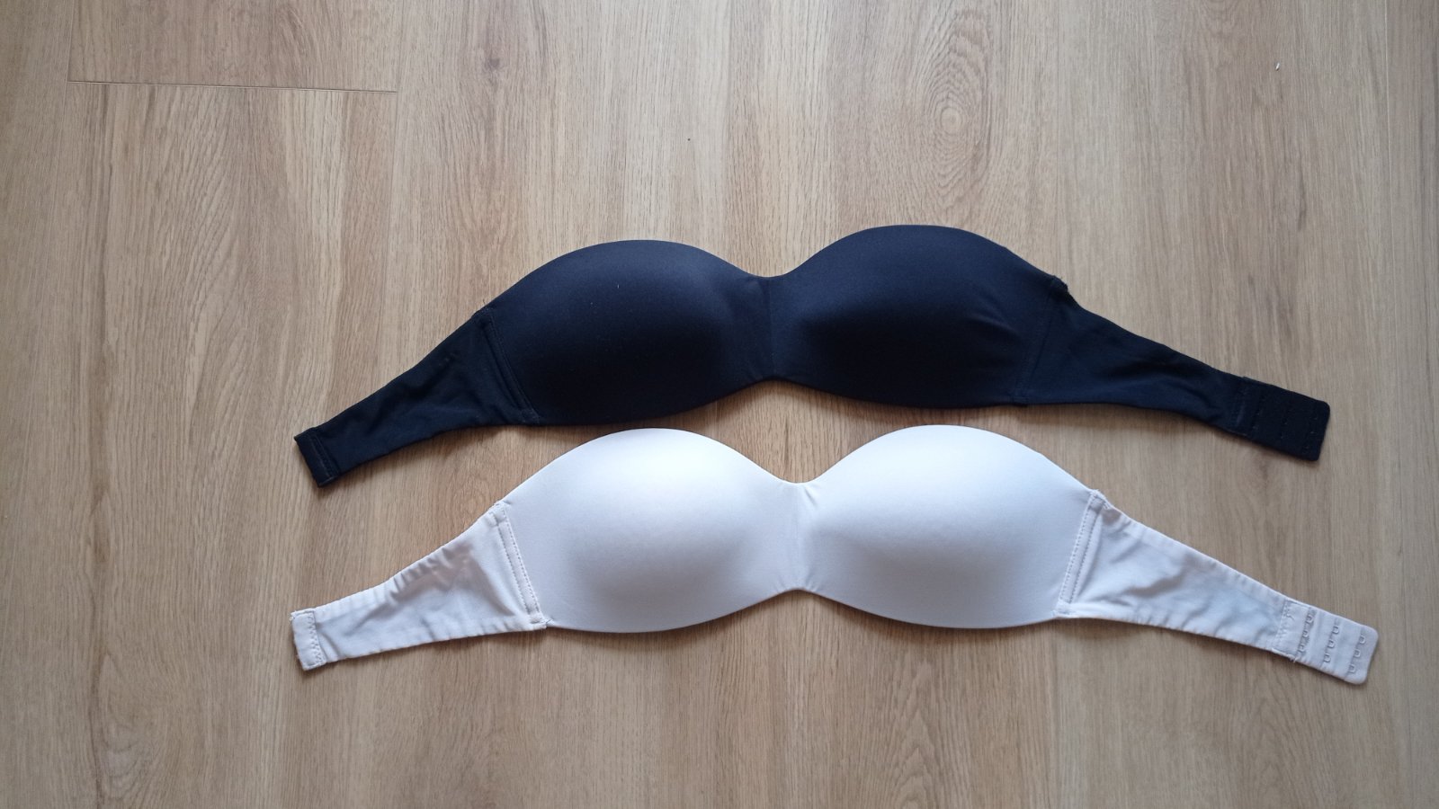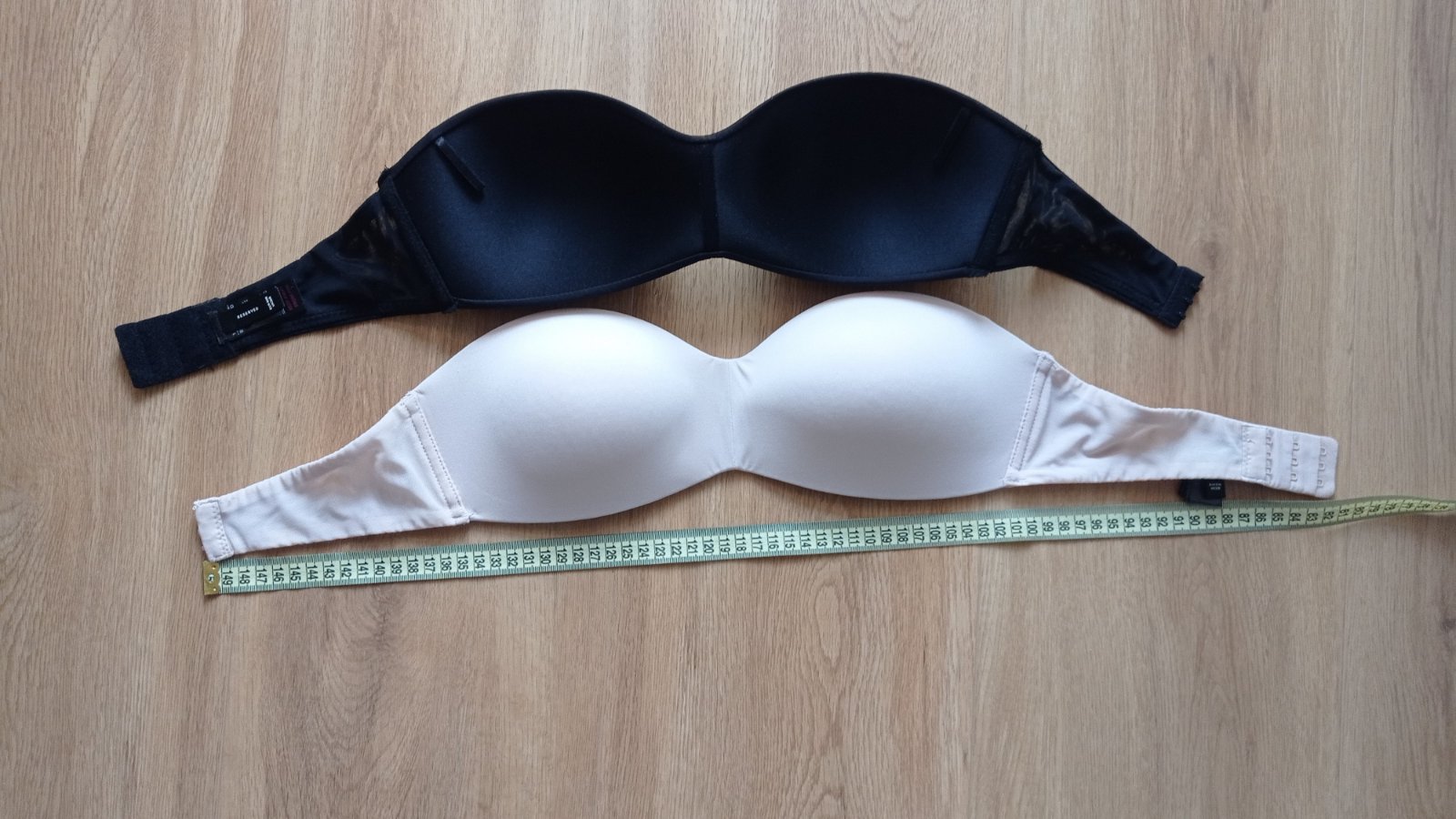 Nevyužité podprsenky bez ramienok, dvojpack béžová a čierna. Béžová oblečená pár krát, čierna vôbec. Rozmery sú na foto. Bez kostíc, jemne vypolstrované, nie je možnosť pripnúť ramienka. Predám spolu alebo aj osobitne. Cena za kus 5€.