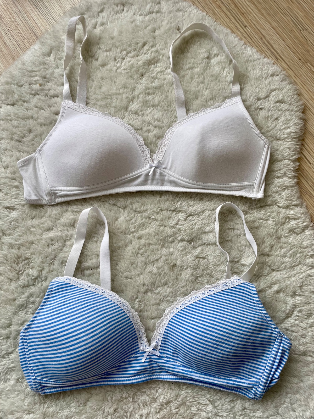Dvojbalenie bavlnenych vystuzenych podprseniek, s nastavitelnymi ramienkami, trojzapinanie, raz oblecene, cena spolu