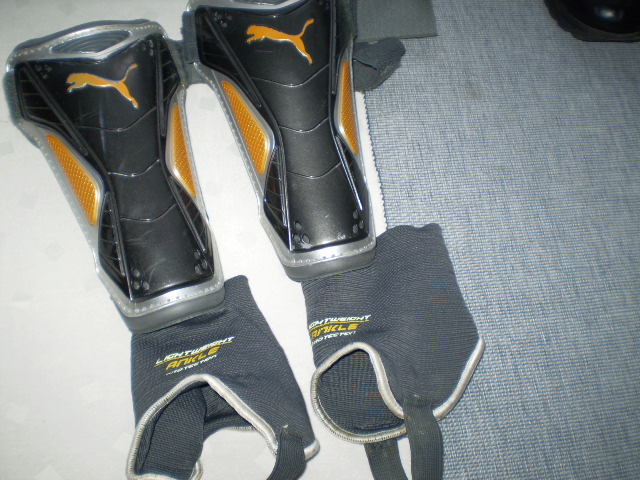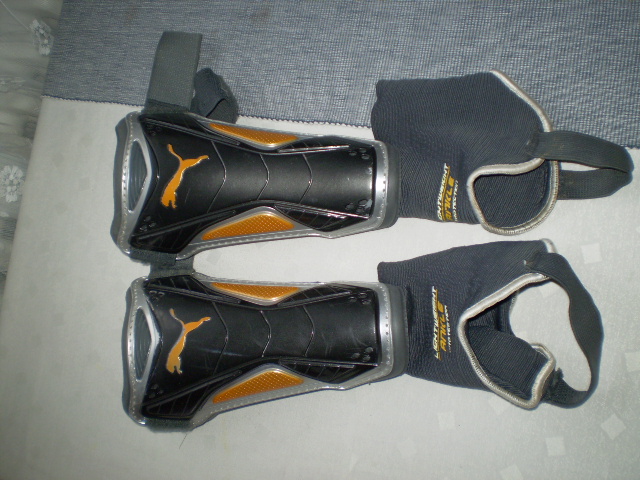 Chrániče Puma, veľkosť L, málinko ošuchnutá farba. Veľmi dobrý nosený stav.