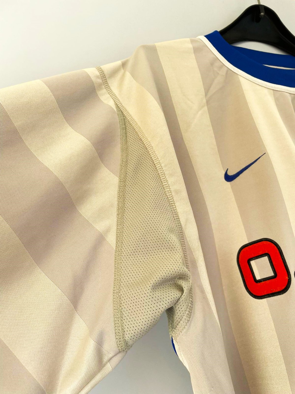 kvalitný značkový dres,zaujímavé detaily,materiál šmýkľavý - ako bývajú dresy,šírka meraná pod pazuchou = 64 x 2 cm,dlžka = 75 cm vpredu,78 cm vzadu,dlžka od pazuchy dole na boku = 41 cm,je jemne vystrihnuté do oblúka,predný diel o niečo kratší ako zadný