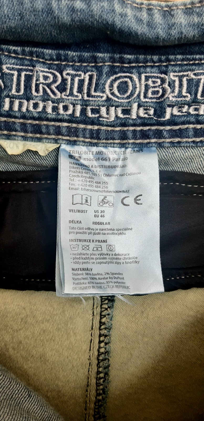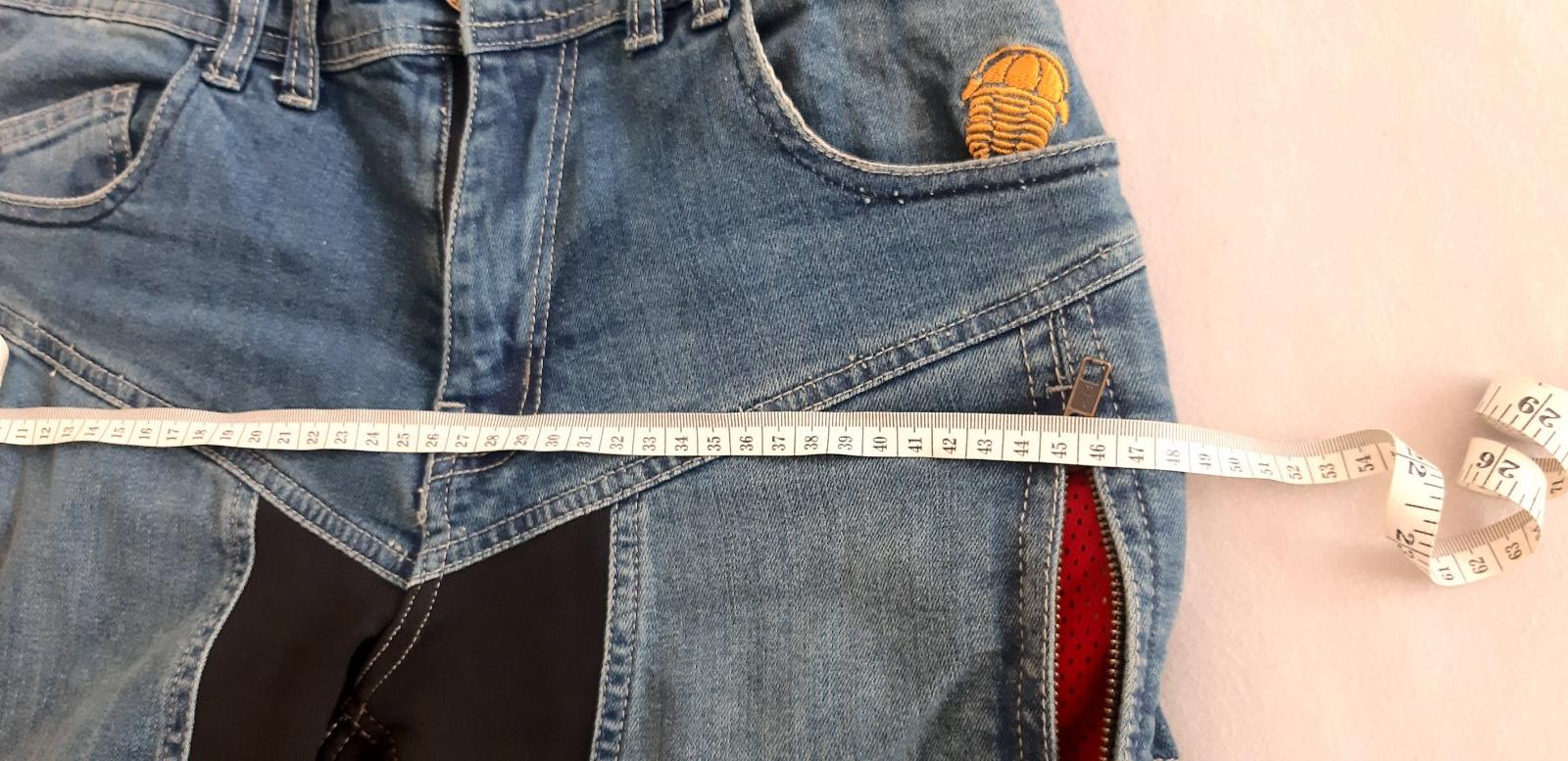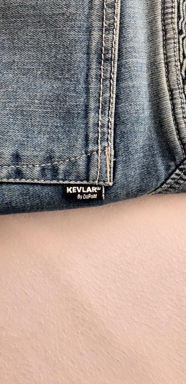 Par krat oblecene, bez poskodeni, super stav. Kevlarove riflove panske nohavice ceskej vyroby, vyberatelne vystuhy na kolenach a v bokoch, vetrancie zipsy na bokoch. Kevlar pouzity v rifliach je od DuPont. Prilozene ochranne vrecko. Velkost uvadzana od vyrobcu EU 46, US 30, rozmerovo tak M podla oblecenia, co manzel nosi. Merane vo fotkach, prilozena aj velkostna tabulka od vyrobcu. Kupovane v r 2020, cena bola cca 180€. Cena aj s postou (2.tr, doporucene).