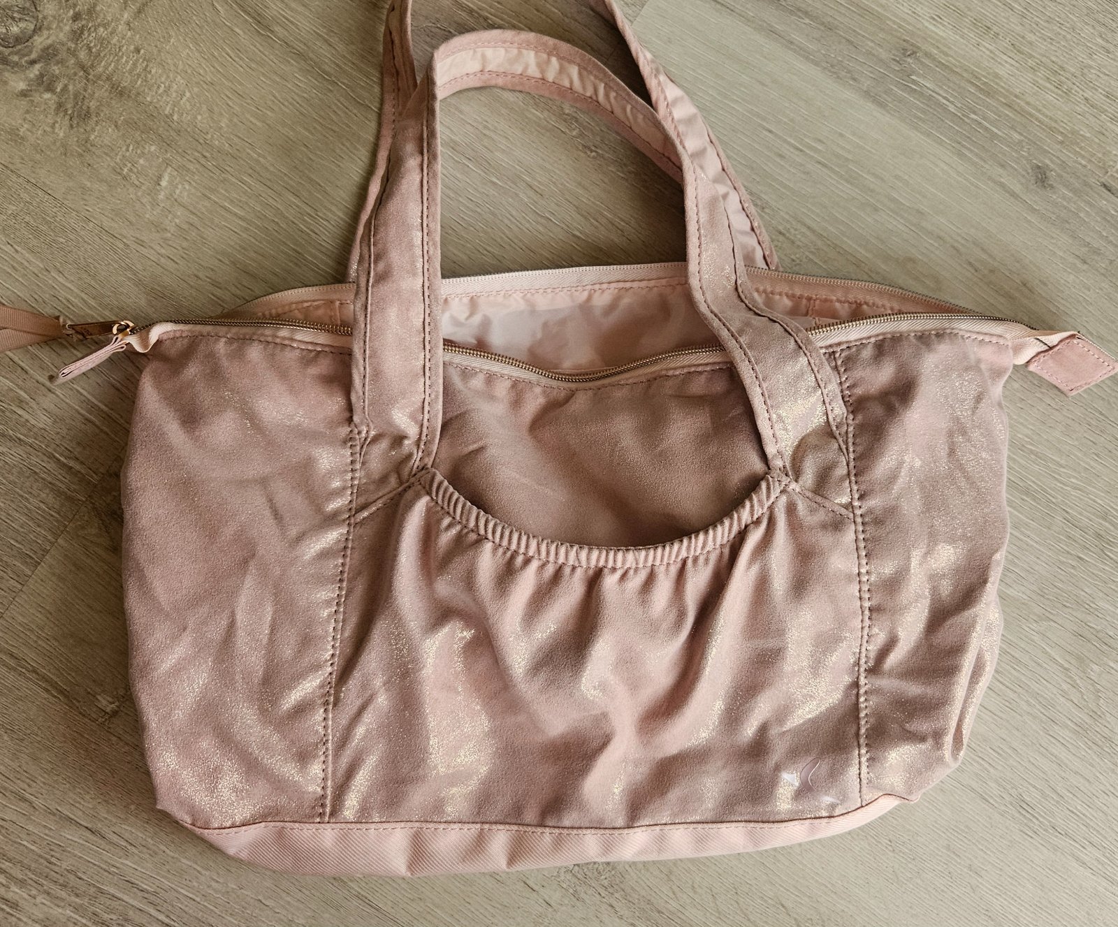 Predám zopár krát použitú krásnu trblietavú tašku pre dievčatko v super stave bez poškodení, vhodnú napríklad na tréningy baletu, gymnastiky apod. Kupovaná v decatlhone