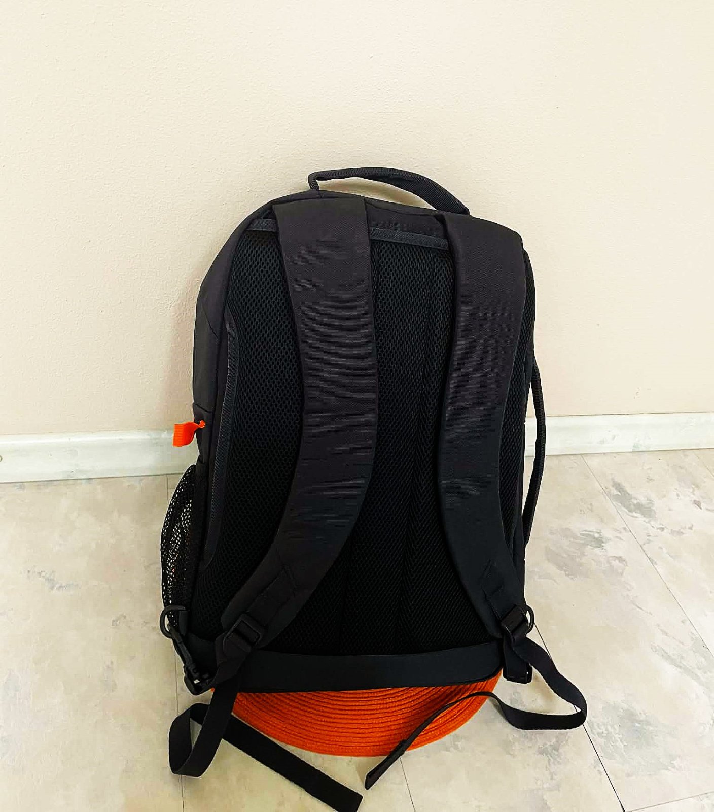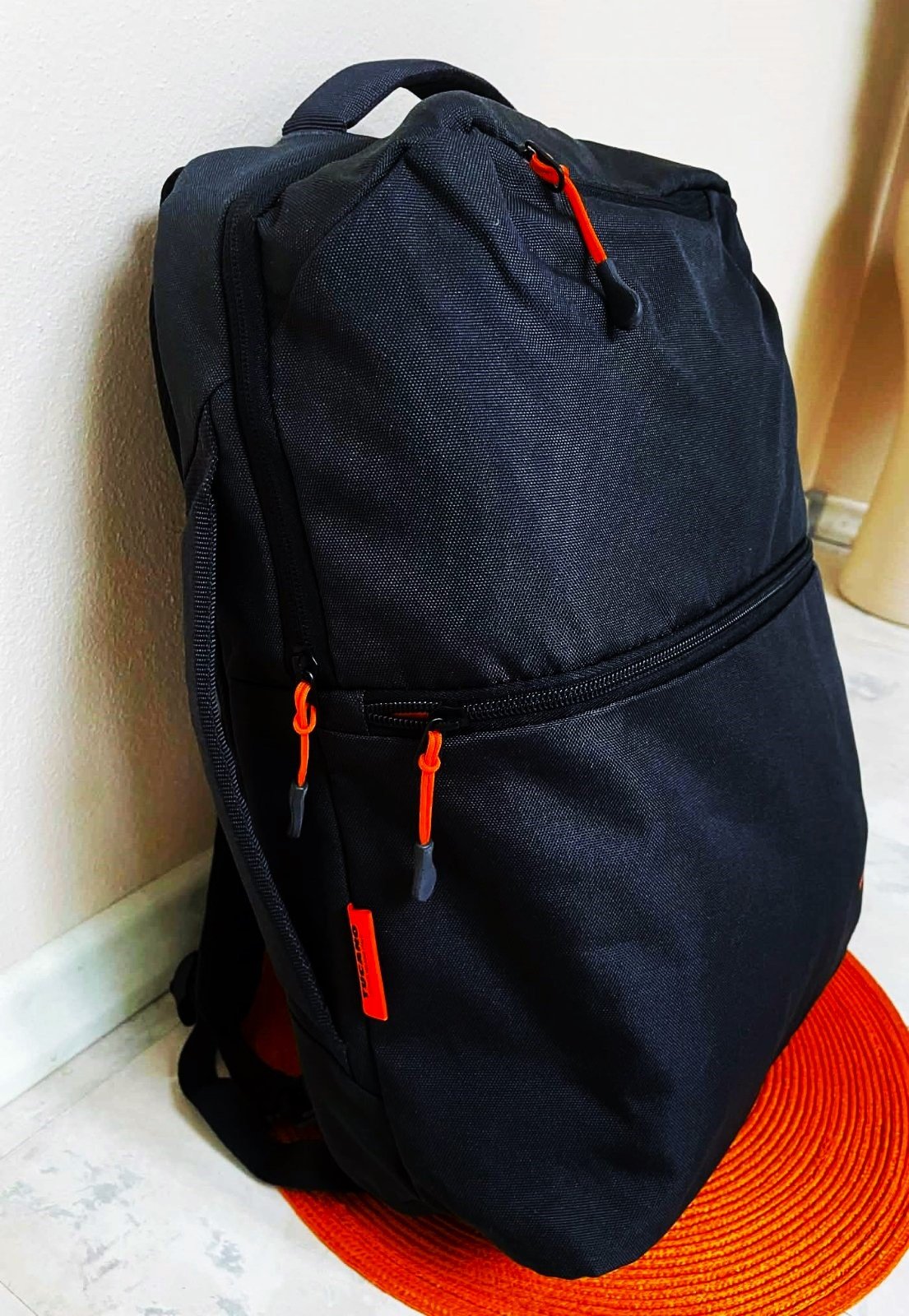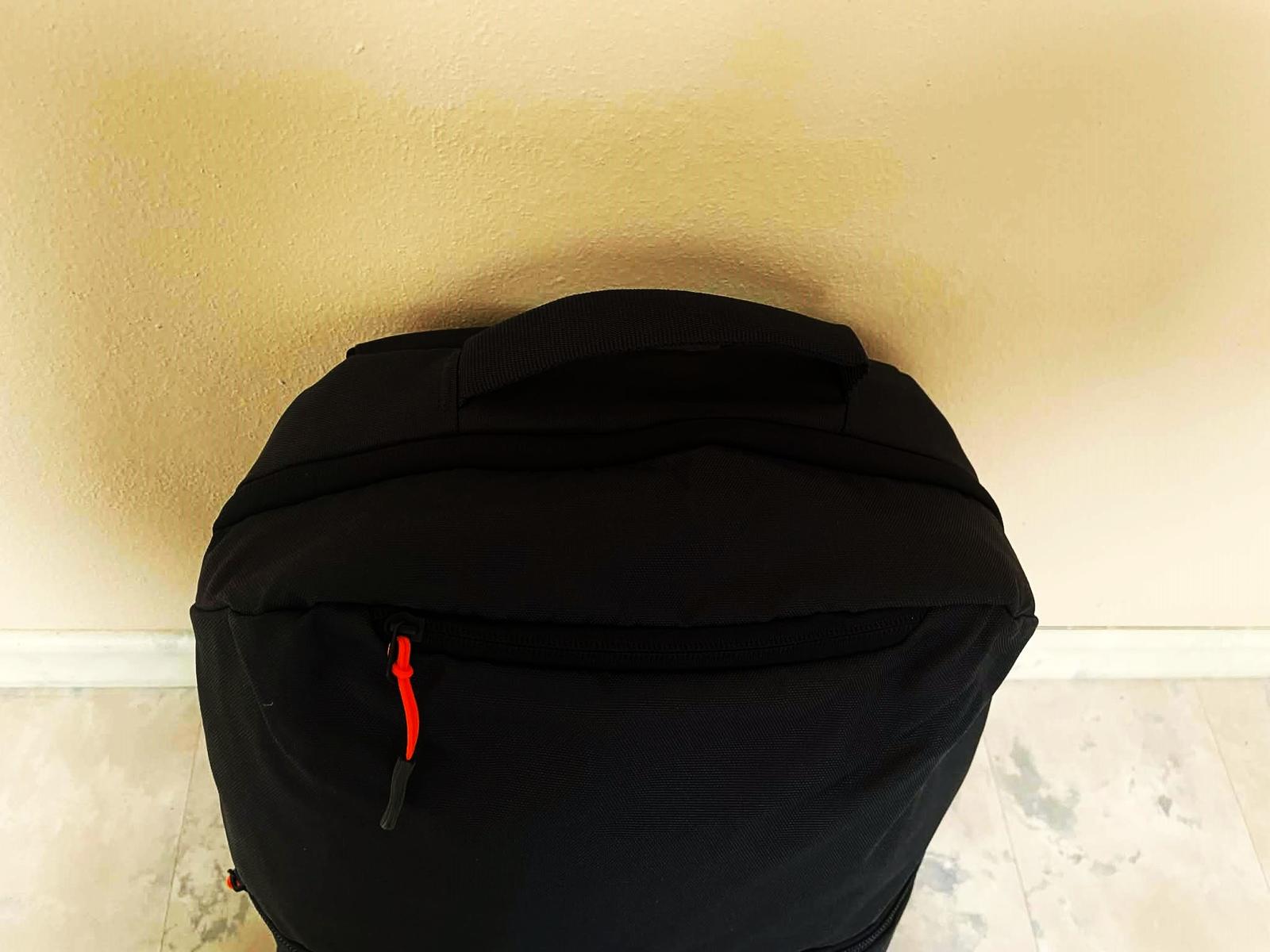 min.použitý ľahúčky priestranný rupsak,20 litrový,veľmi kvalitný ( šitie a vypracovanie ) ,vystužený chrbát,dá sa nosiť aj ako taška - do ruky - viď bočná vystužená rúčka,nepremokavý povrch,sýto čierny s pestrým futrom,dnu mnoho priehradok,na boku vrecko s gumičkou na fľašu,veľmi vhodný na športy a na turistiku,ale aj na výlety a do posilňovne,tiež na batožinu v nízkonákladových leteckých spoločností,v top stave - garantujem,výška = 44 cm šírka = 32 cm,dno a boky = 13 cm