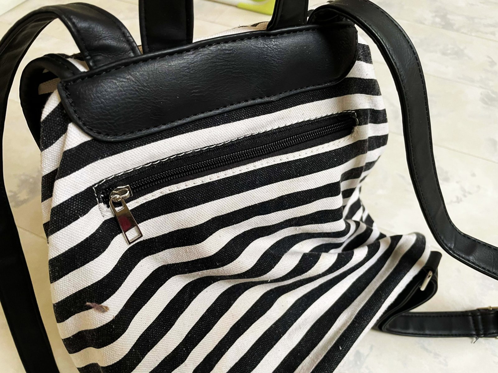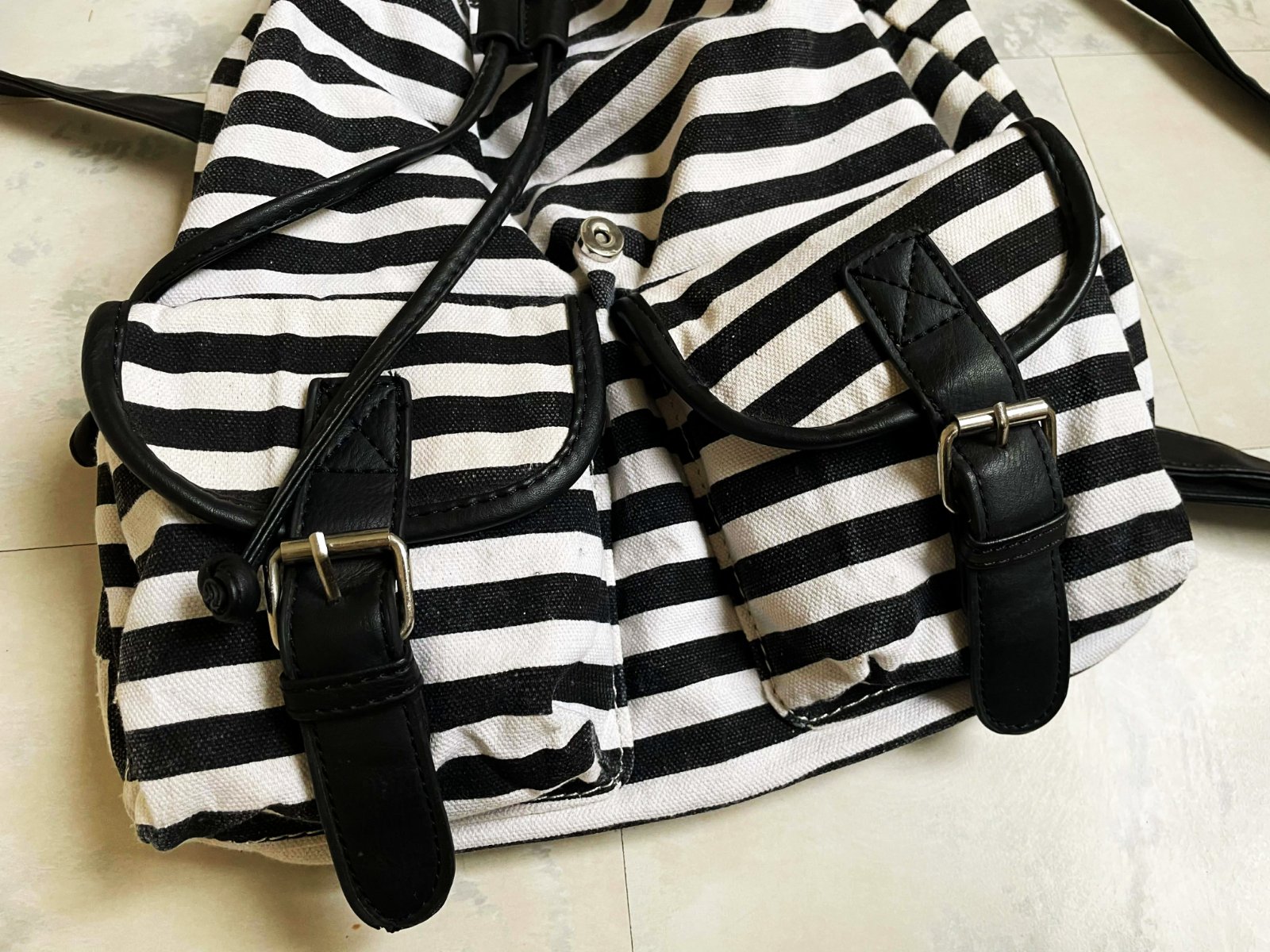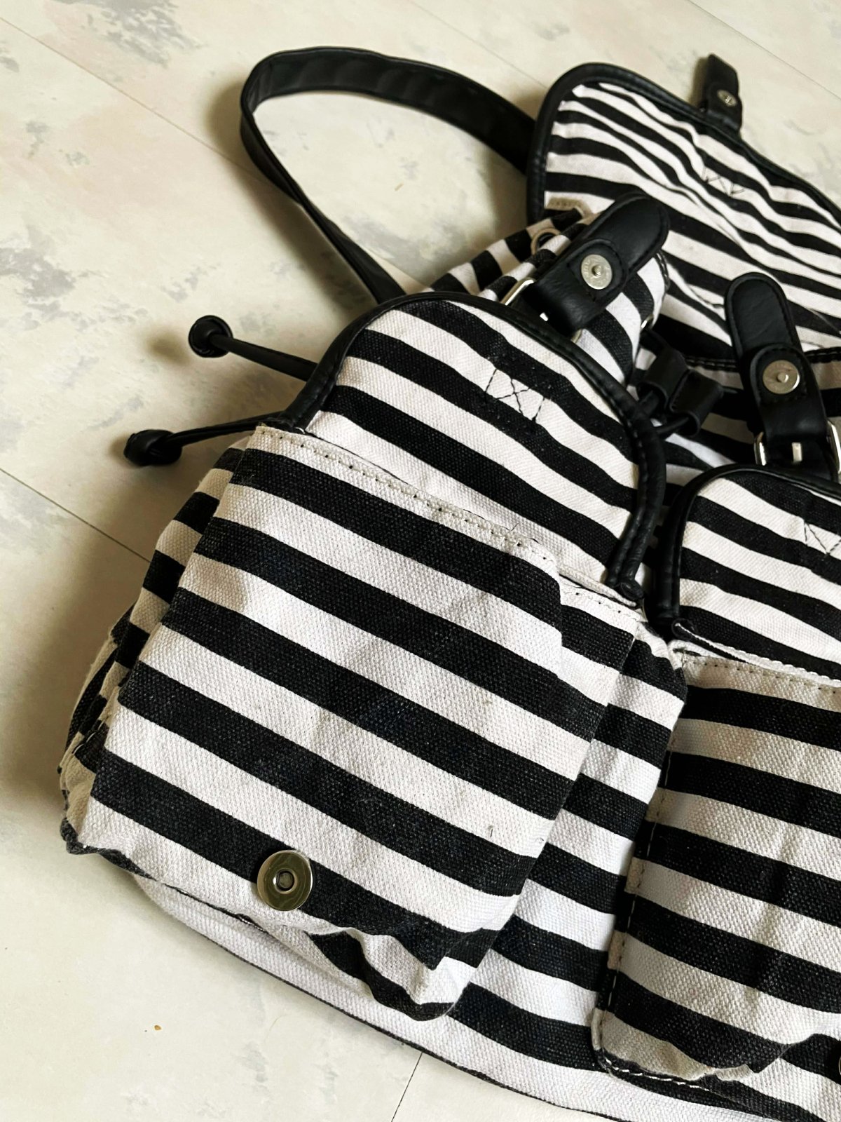 hrubý celtový rupsak,je menší,ale veľmi priestranný, praktické zapínanie na magnetky,dnu 1 kapsa/prepážka, zvonku vzadu kapsa na zips/telefón,kľúče...
