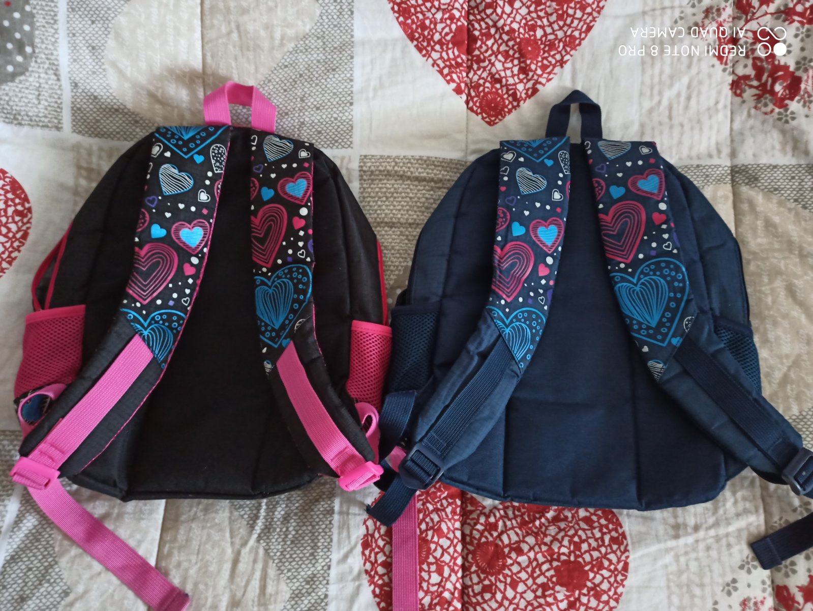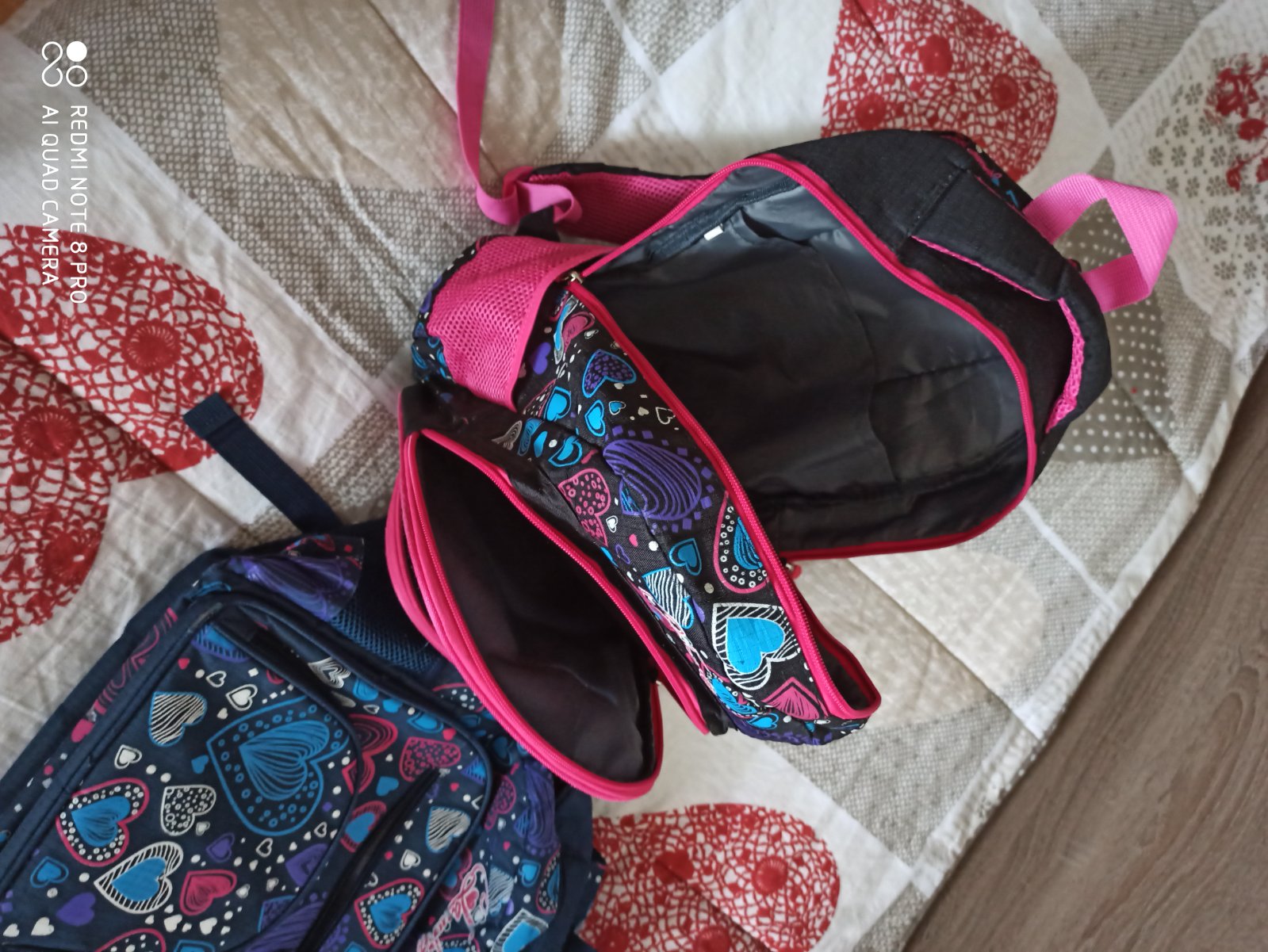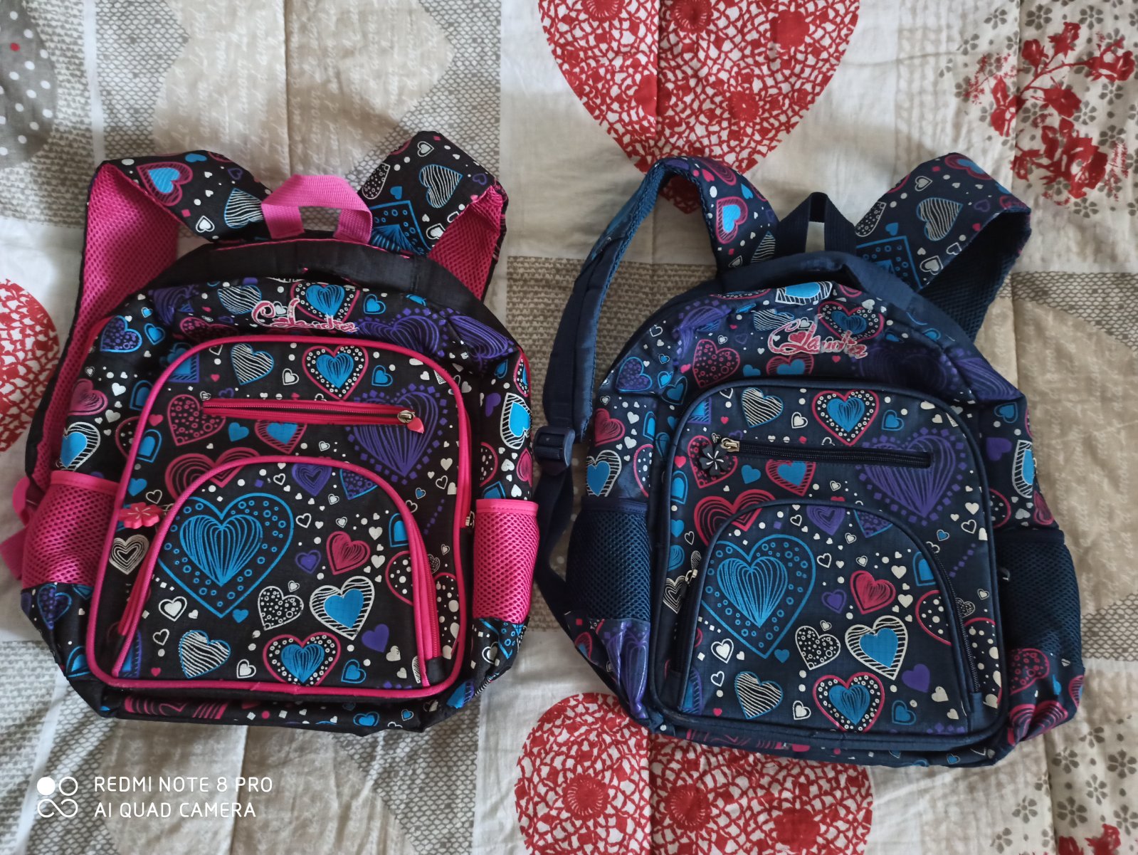 Ponúkam pekné ruksaky, dievčatá nosili na školske výlety,nosené v dobrom stave,len jedna chyba-vid posledné foto,cena len spolu