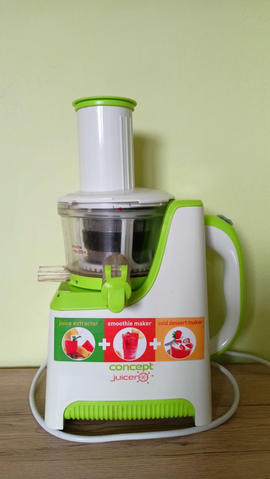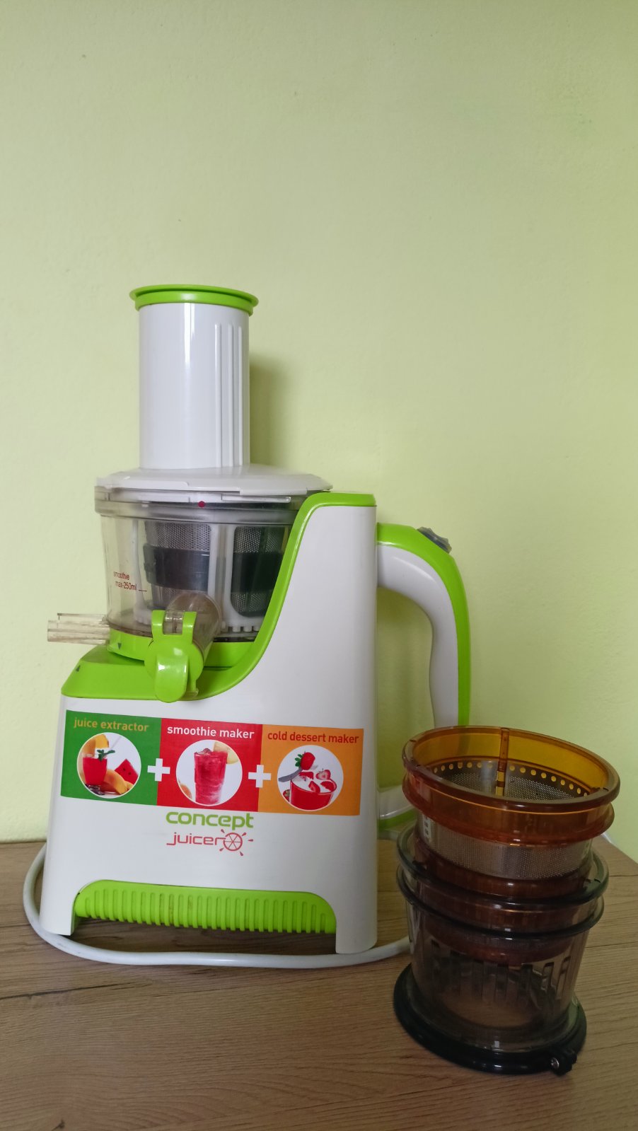 Odšťavovač značky Concept vhodný na odšťavovanie ovocia /odkôstkované/ a zeleniny.