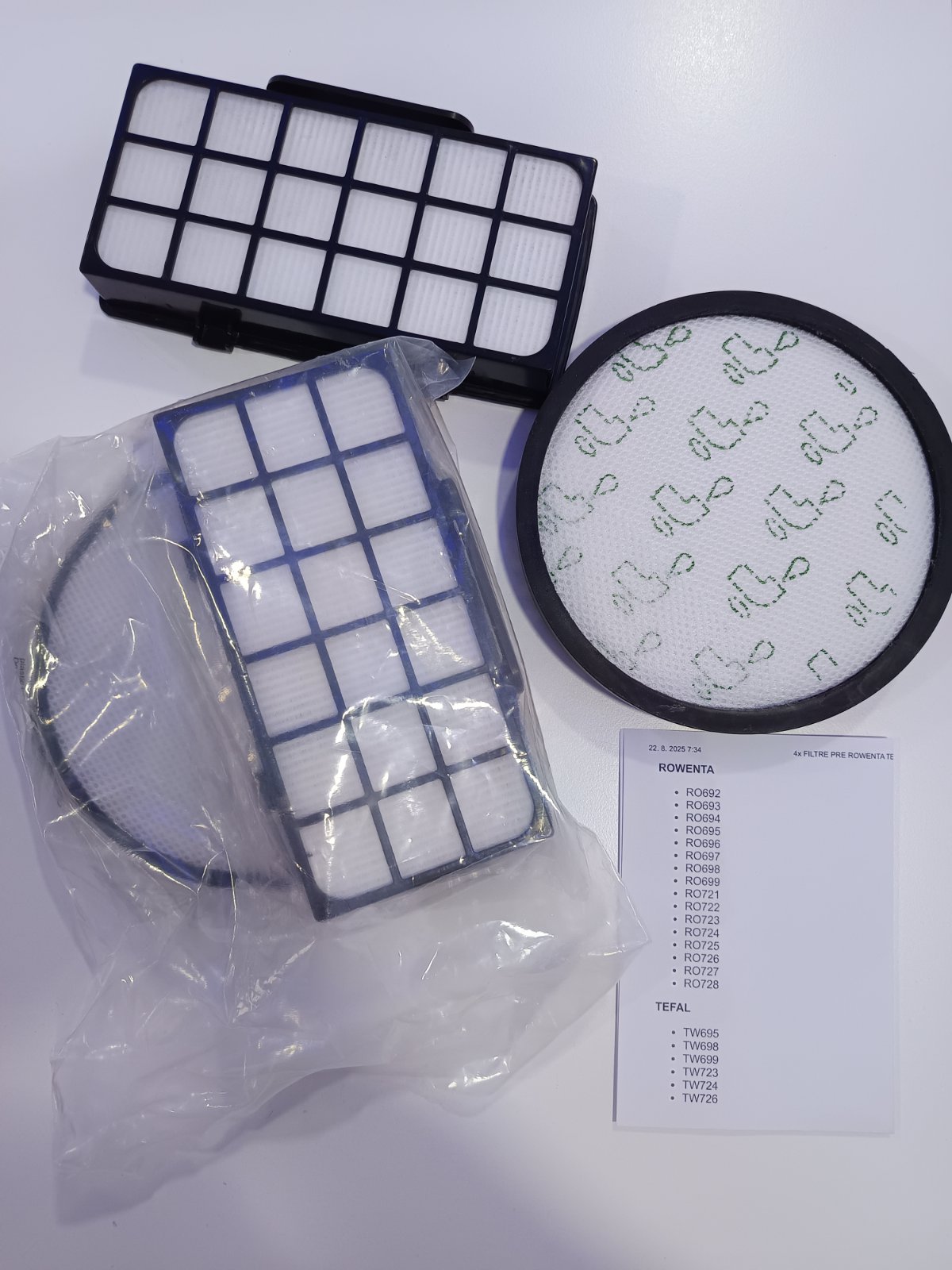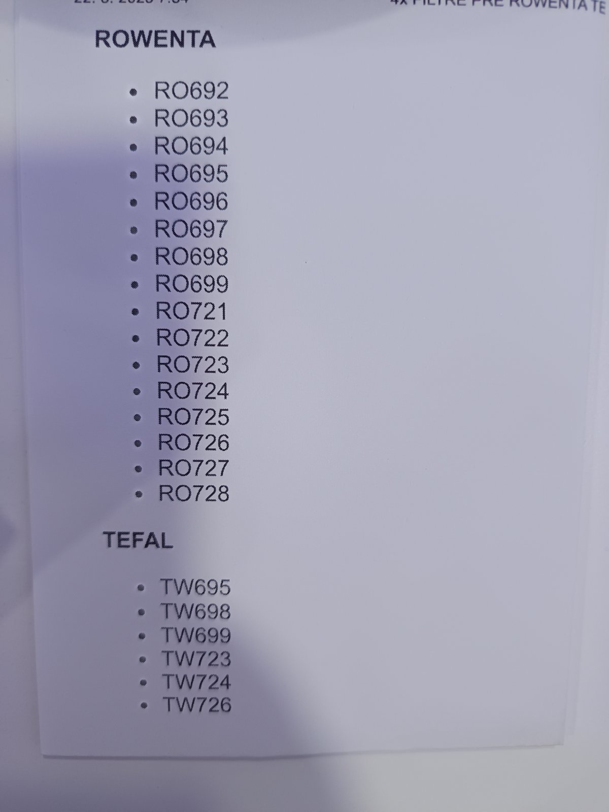 4x filter do vysávača Rowenta. Objednala som zlé. Zoznam kompatibilných vysávačov na druhej foto. Cena spolu.