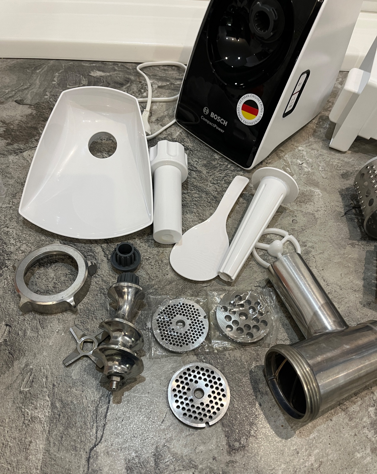 Dobrý deň, predám mlynček na mäso Bosch MFW3X10B, mlynček je použitý cca 2kát, má tri sitá, dve nepoužité, dokúpený nadstavec na struhanie v hodnote 30€, návod, pôvodná cena mlynčeka cca 100€, ponúkam za 80€, tel.č. +421918861438 BA Podunajské Biskupice, viem doviezť cestou na Záhorie, Skalica, Trnava, Nitra, Zlaté Moravce, Levice, alebo Packeta.
