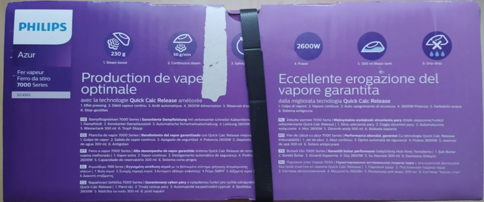 Predám novú zabalenú naparovaciu žehličku Philips azur 7000 series s vylepšenou funkciou pre rýchle odvápnenie, parný ráz, trvalý výstup pary, automatické bezpečnostné vypnutie, spotreba 2 600 W, nádržka na vodu 300ml