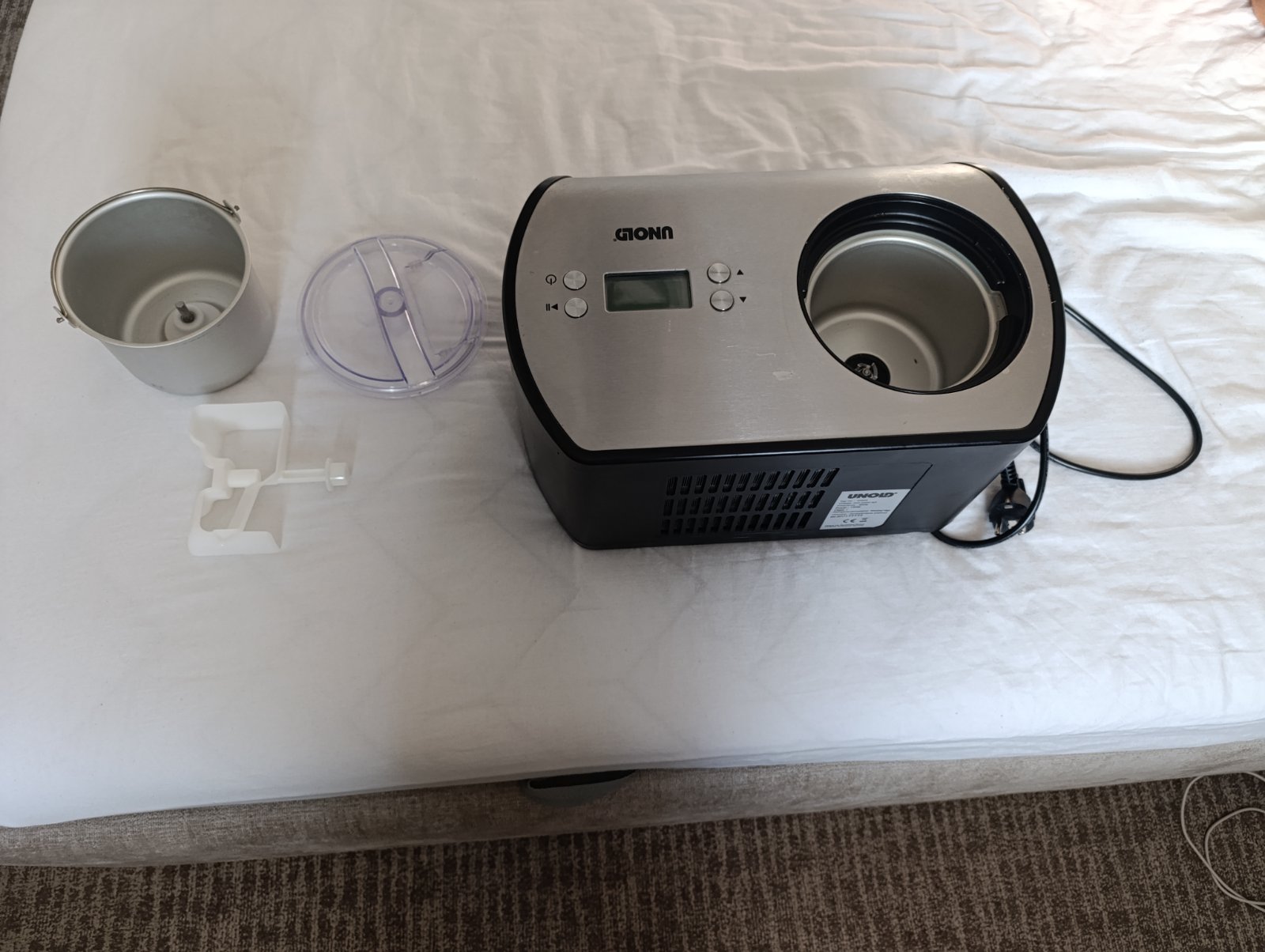 Prístroj na výrobu zmrzliny.Nebol použitý a je v pôvodnom balení so všetkým príslušenstvom.Cena je 23Eúr