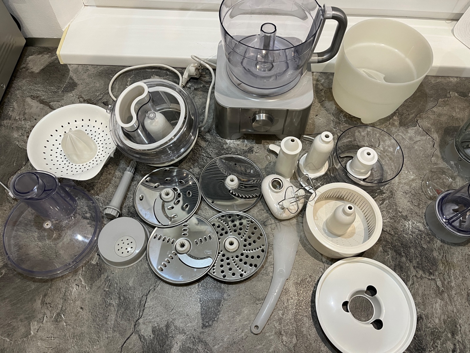 - Štandardné príslušenstvo obsahuje: čepeľ na cesto, disk na hrubé krájanie/strúhanie, disk na jemné krájanie/strúhanie, disk na parmezán a hranolky, kovovú metličku (dvojitá rotácia), multifunkčný mlynček, mini misku, odšťavovač citrusov