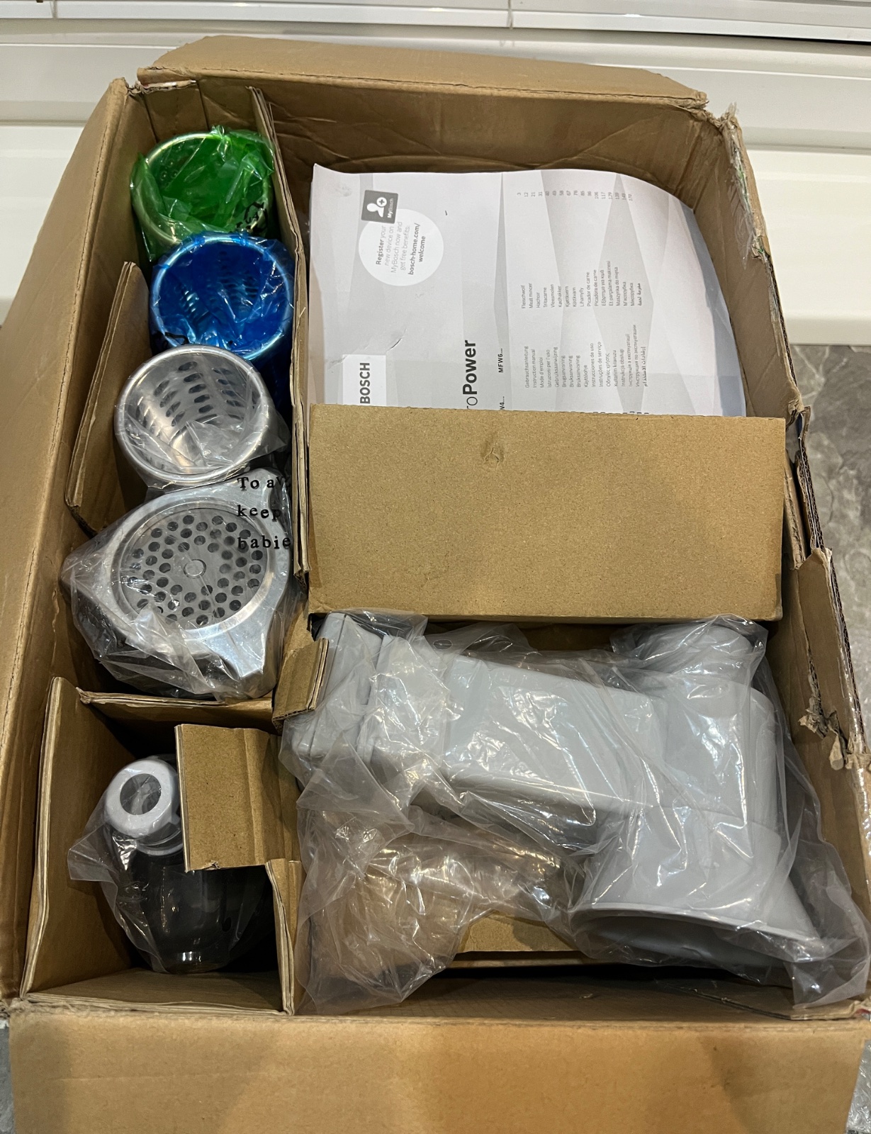 Dobrý deň, predám mäsomlynček Bosch MFW68660 ProPower 2200 W čierna, chrómová, mlynček je nový, nikdy nepoužitý, návod, originál krabica, krabica je mierne poškodená, ponúkam za 140€, tel.č. +421918861438 BA Podunajské Biskupice, viem doviezť cestou na Záhorie, Skalica, Trnava, Nitra, Zlaté Moravce, Levice, NZ, DS, alebo pošlem Packeta.