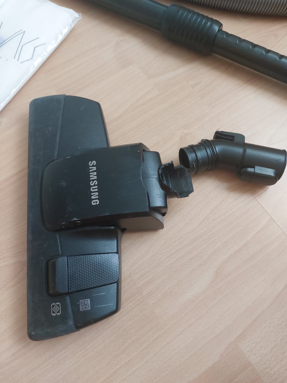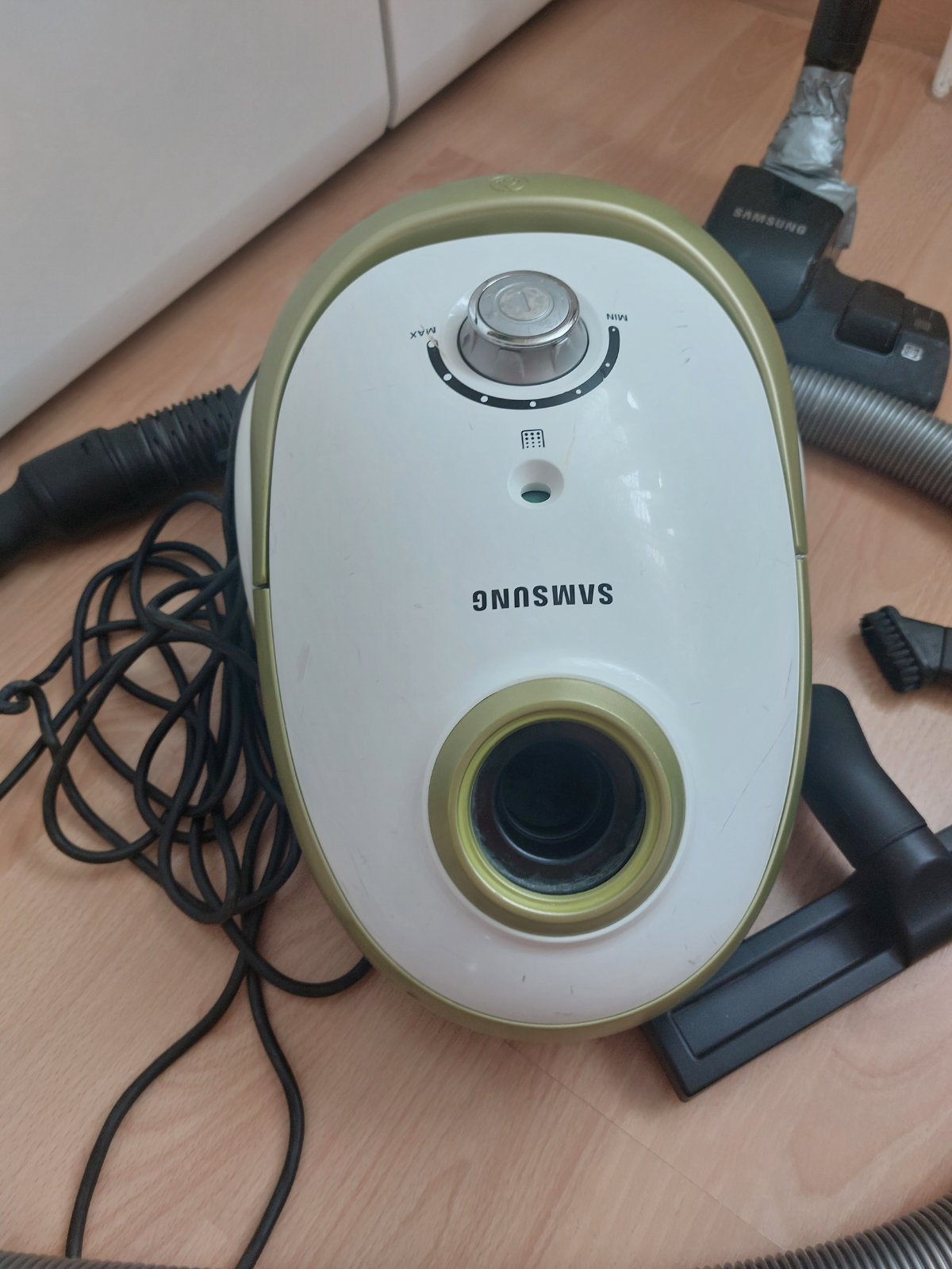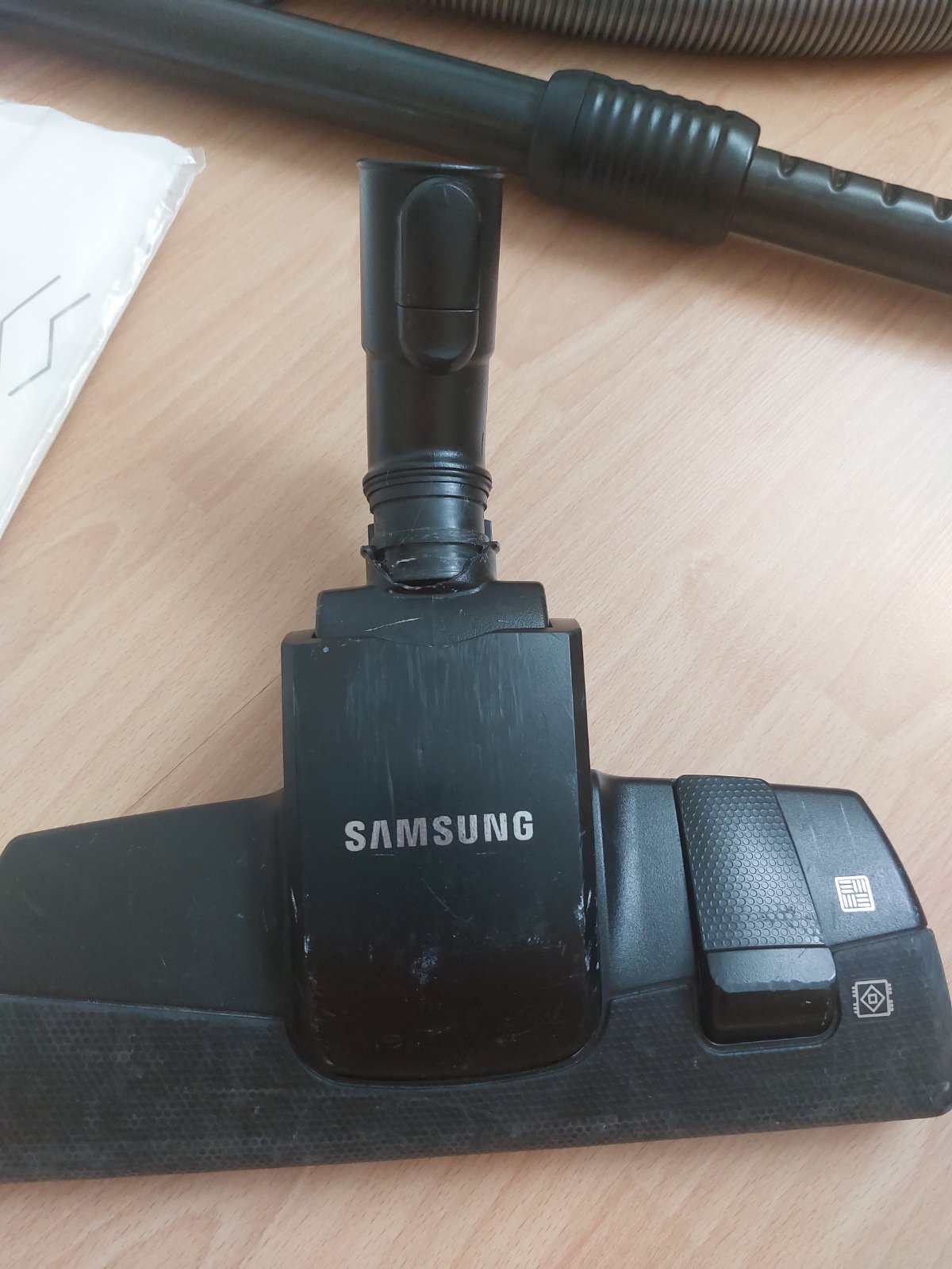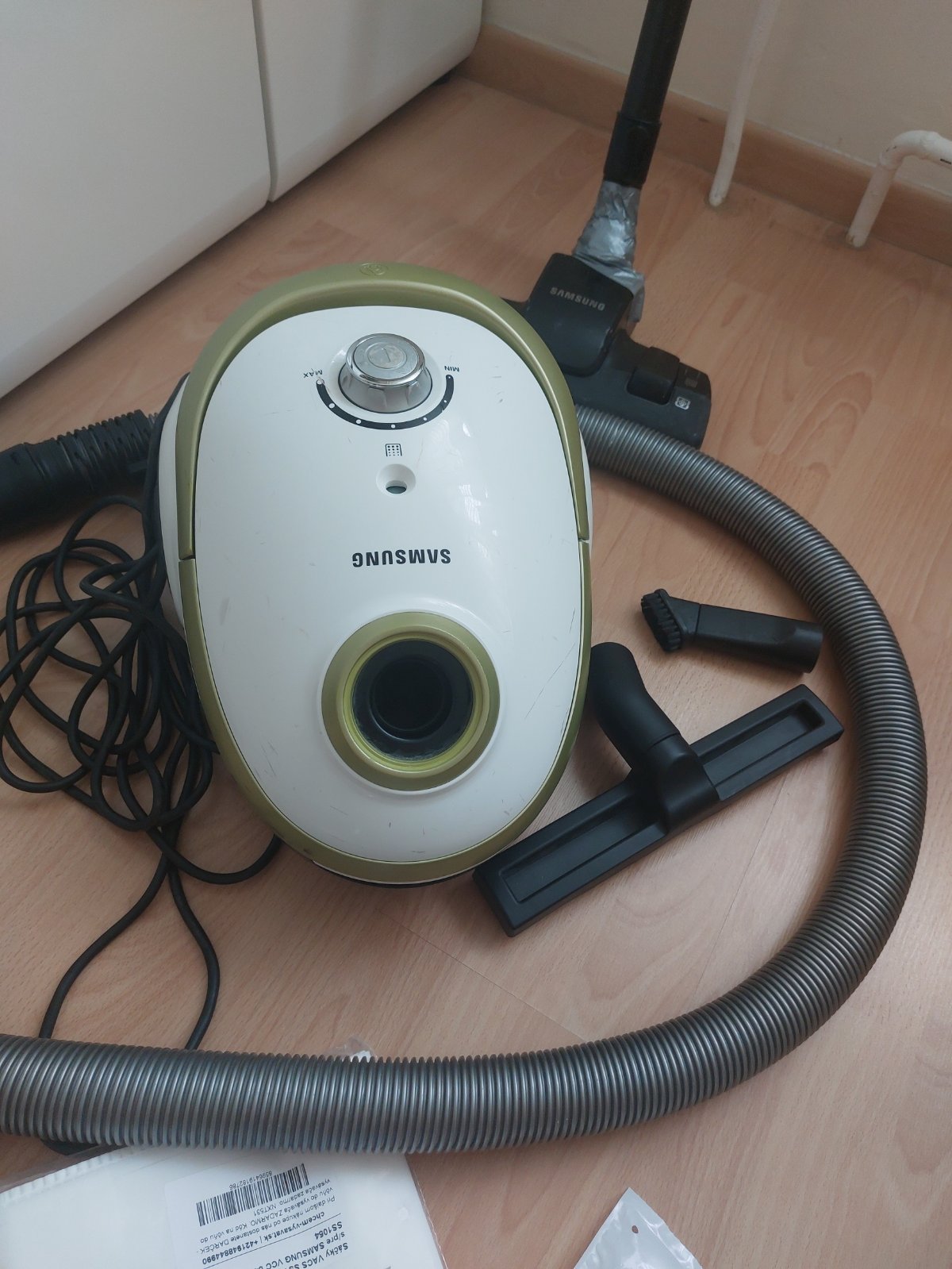 Predám 8- ročný vreckový vysávač zn. Samsung. Vysávač je po motorickej stránke plne funkčný, príkon 1200 W, sací výkon: 330 W, hlučnosť 81 dB, EPA filter, elektronický ukazovateľ naplnenia vrecka, dĺžka prívodného kábla 6 metrov, akčný rádius 9,2 m, objem vrecka 2,5 l. K vysávaču je ako príslušenstvo štrbinová hubica (nepoužitá) a hubica na prah. Vysávač má veľmi silný sací výkon, je však pokazené samonavýjanie kábla a zlomená parketovú hubica (priemer rúrky 3 cm), čo je zohľadnené v cene. Po dokúpení univerzálnej náhradnej podlahovej hubice (ceny od 7 eur), je plne využiteľný so silnejším výkonom ako súčasné vysávače. K vysávaču za 10 eur ponúkam aj pred mesiacom zakúpených 8 originál vreciek a motorový filter v hodnote spolu 19 eur. Iba osobný odber Petržalka.
