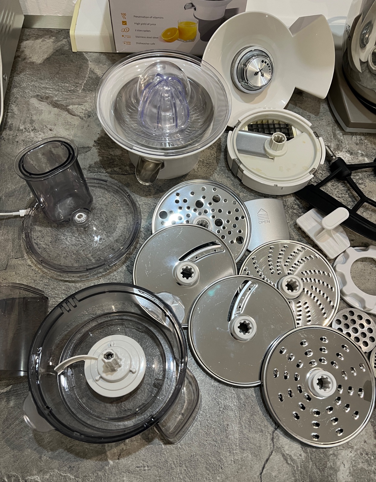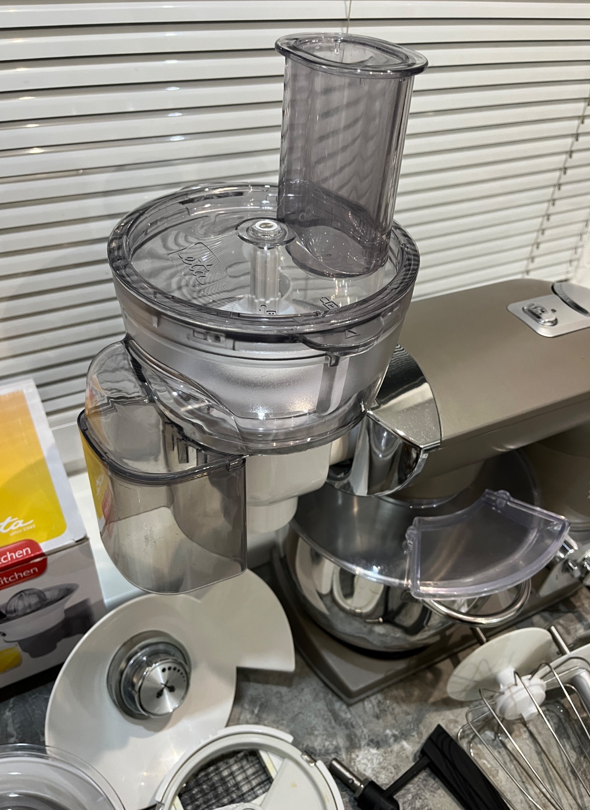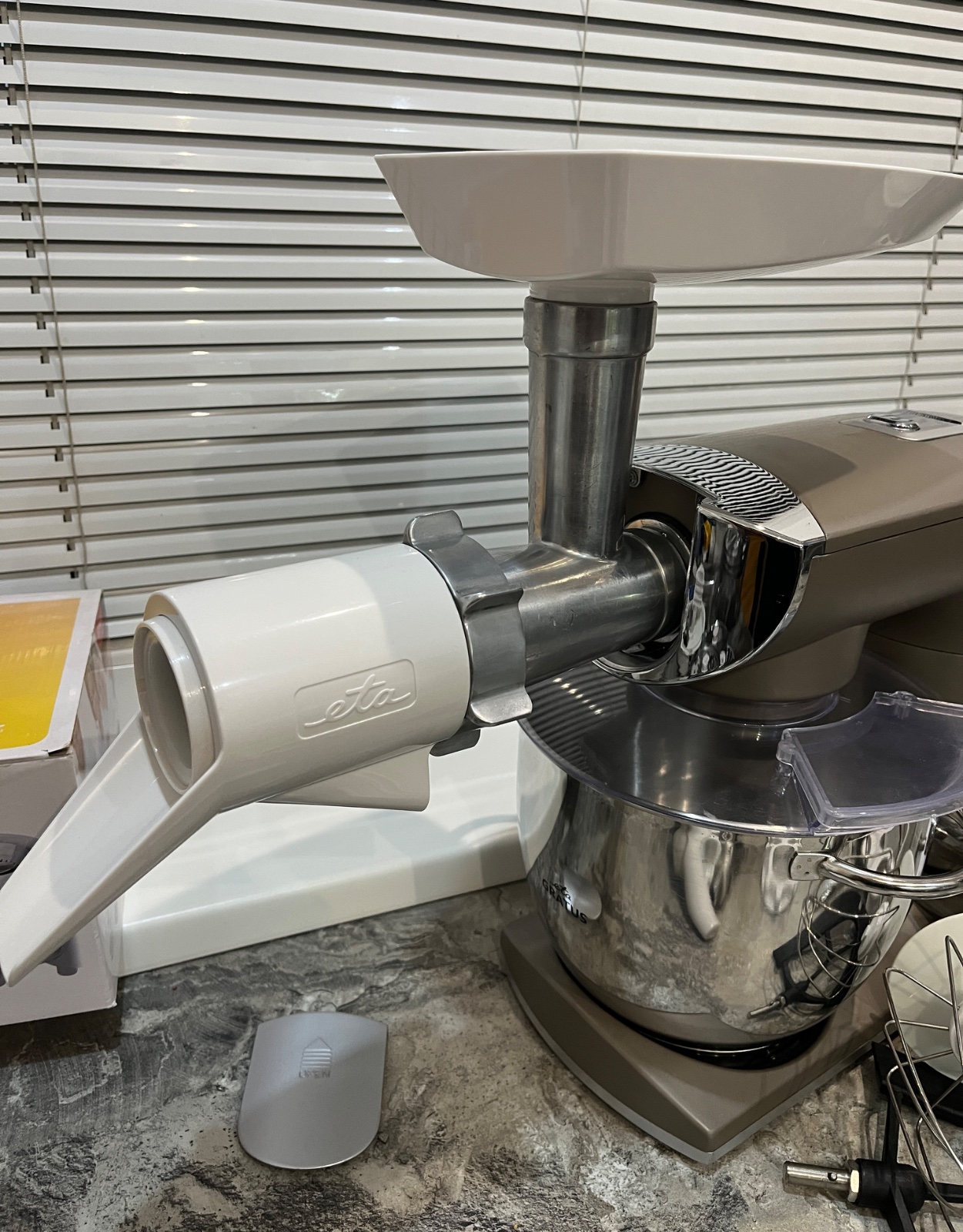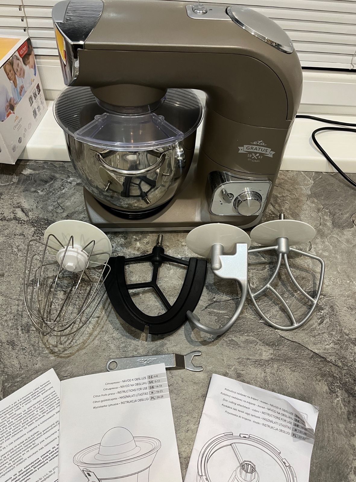 Dobrý deň, predám kuchynský robot ETA Gratus 0028 90030, robot je vo vynikajúcom stave, dokúpené veľké množstvo príslušenstva ako kockovač, odšťavovač, lis na citrusy, mlynček na mak, všetko na fotkách, ponúkam za 280€, tel.č. +421918861438 BA Podunajské Biskupice, viem doviezť cestou na Záhorie, Skalica, Trnava, Nitra, Zlaté Moravce, Levice, NZ, DS, alebo pošlem Packeta.