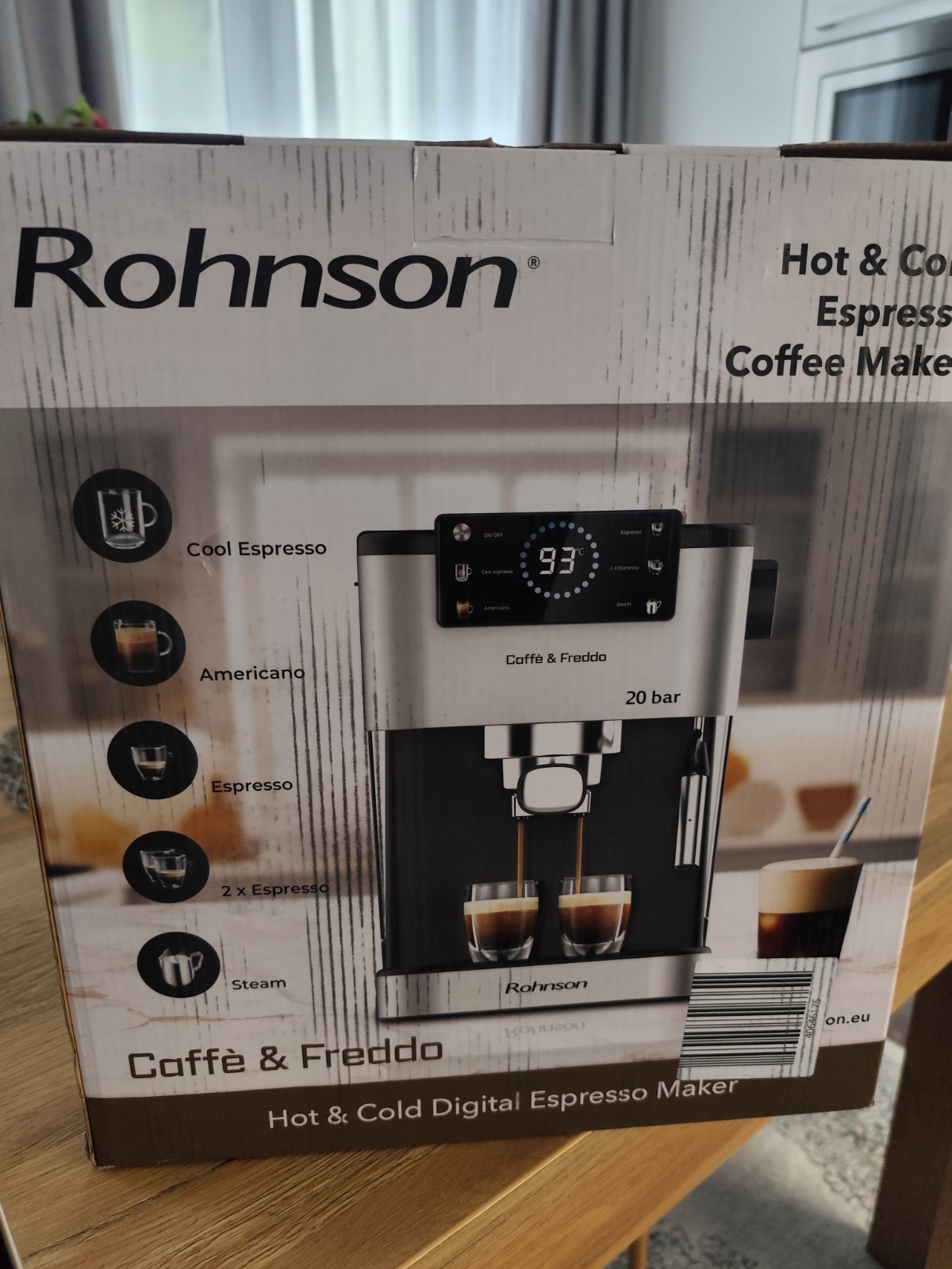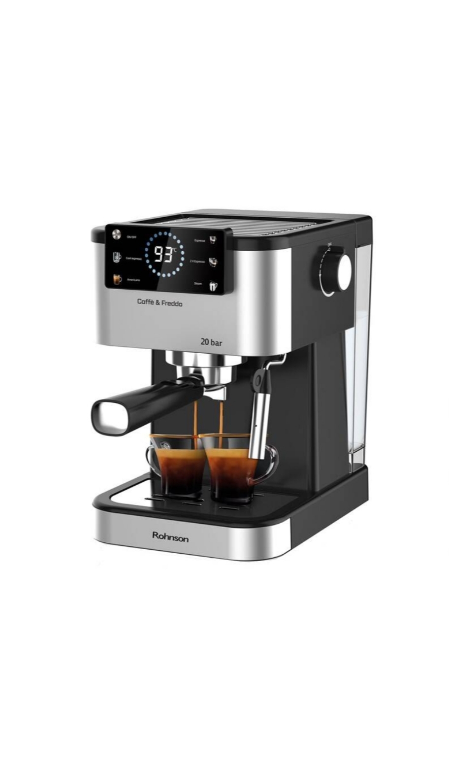 Pákové espresso Rohnson R-98028 Hot & Cold zvládne prípravu horúcej aj studenej kávy. Vysokotlaková tryska na prípravu cappuccina, automatická ochrana proti prehriatiu a pretlaku, a energeticky úsporný systém ERP robia z kávovaru nenahraditeľného pomocníka pre každého, kto ocení dokonalý pôžitok z každej šálky kávy.