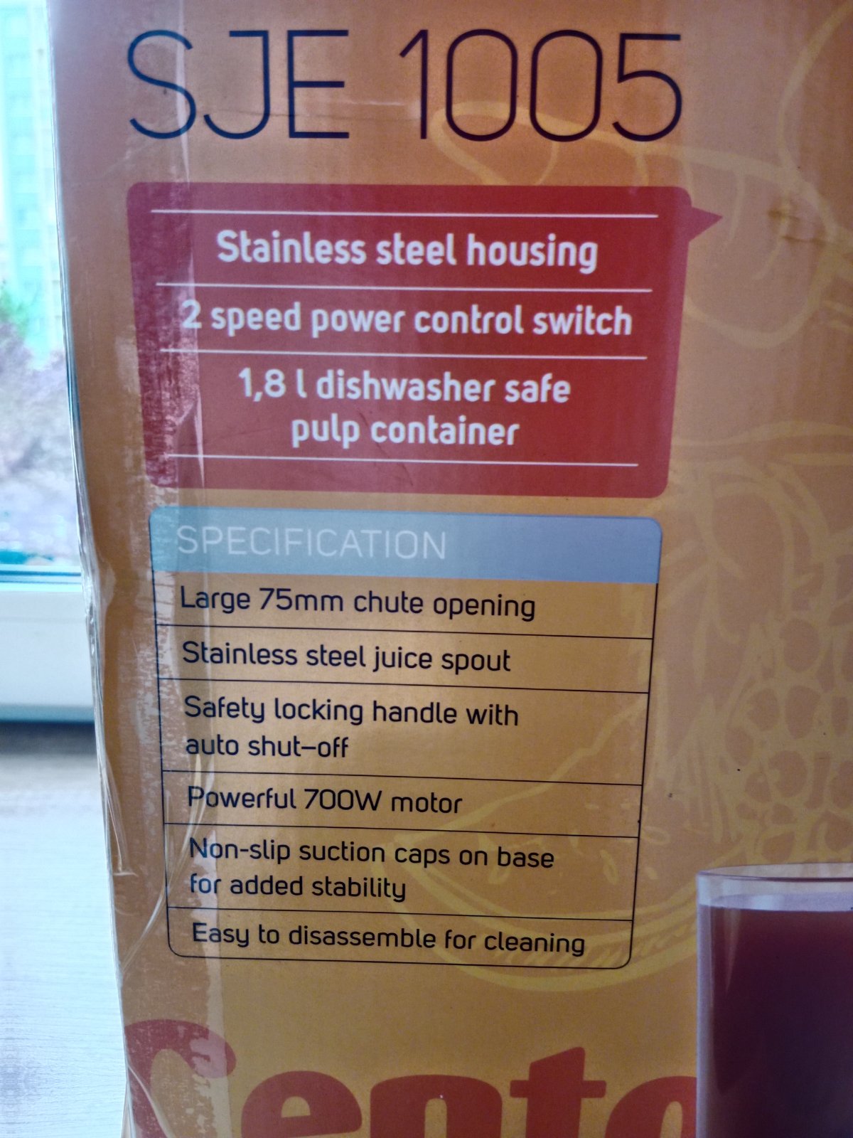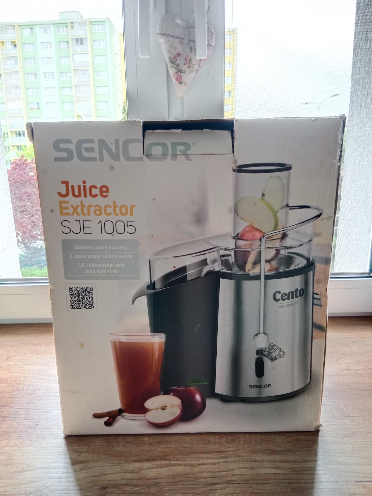 Odšťavovač zn. Sencor bez poškodenia. Všetky odnímateľné časti boli vyčistené v umývačke riadu. Krabica je trochu zašpinená a potrhaná od skladovania.