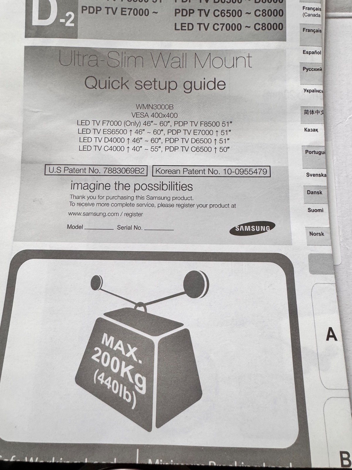 Predam WMN3000B držiak TV SAMSUNG na stenu