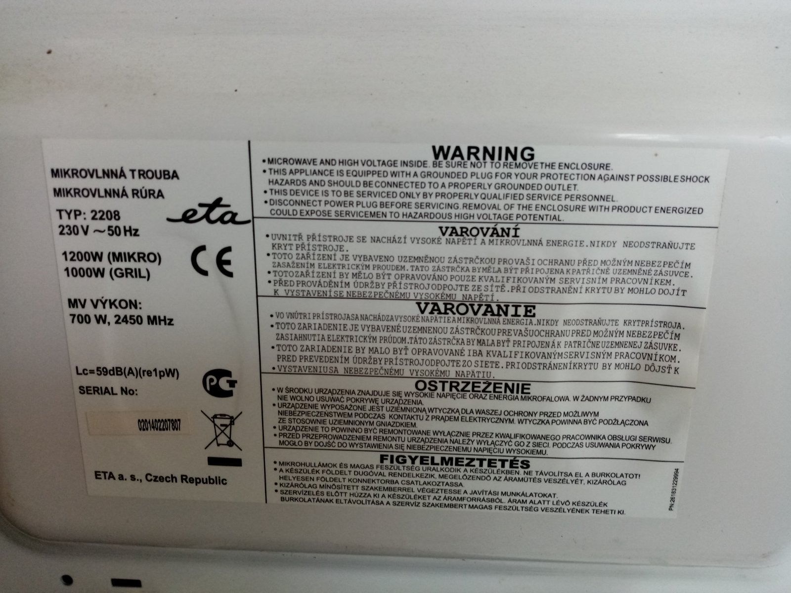 Predám mikrovlnnú rúru od výrobcu ETA, modelový rad Klasico, typ – 2208.90000. Strieborná farba.